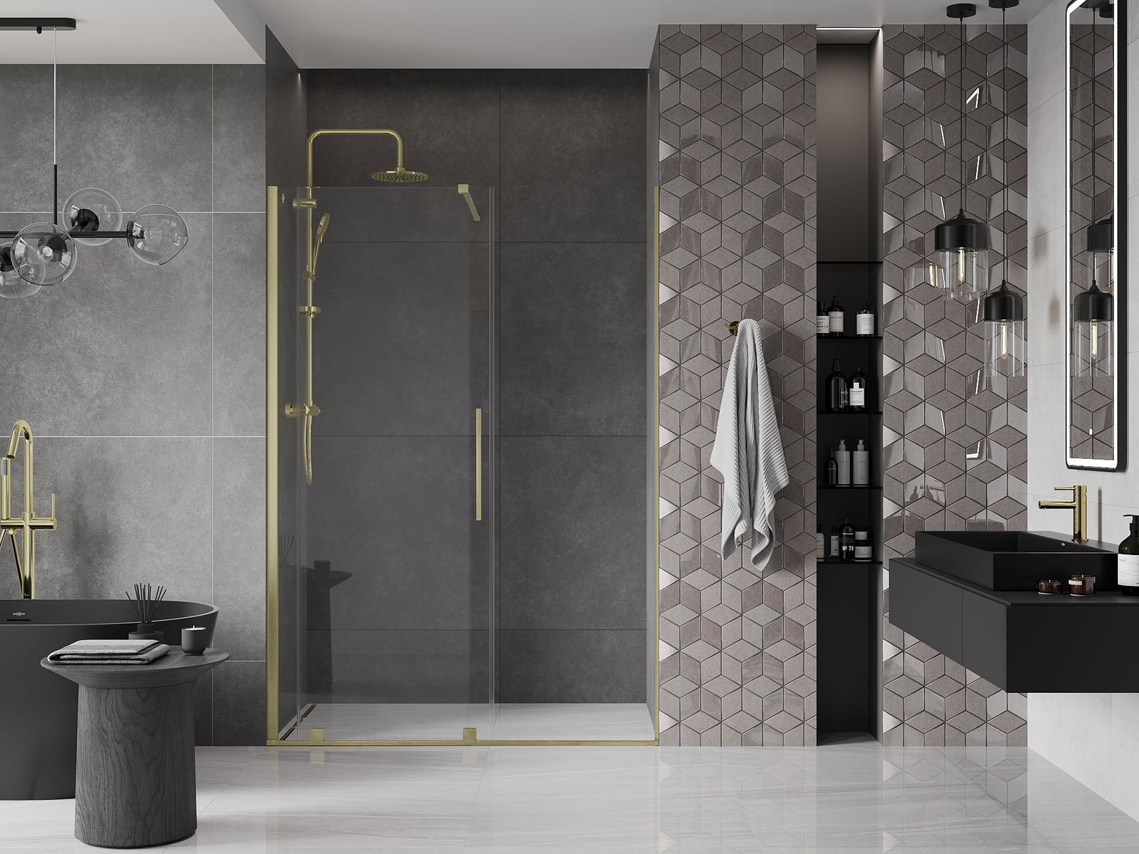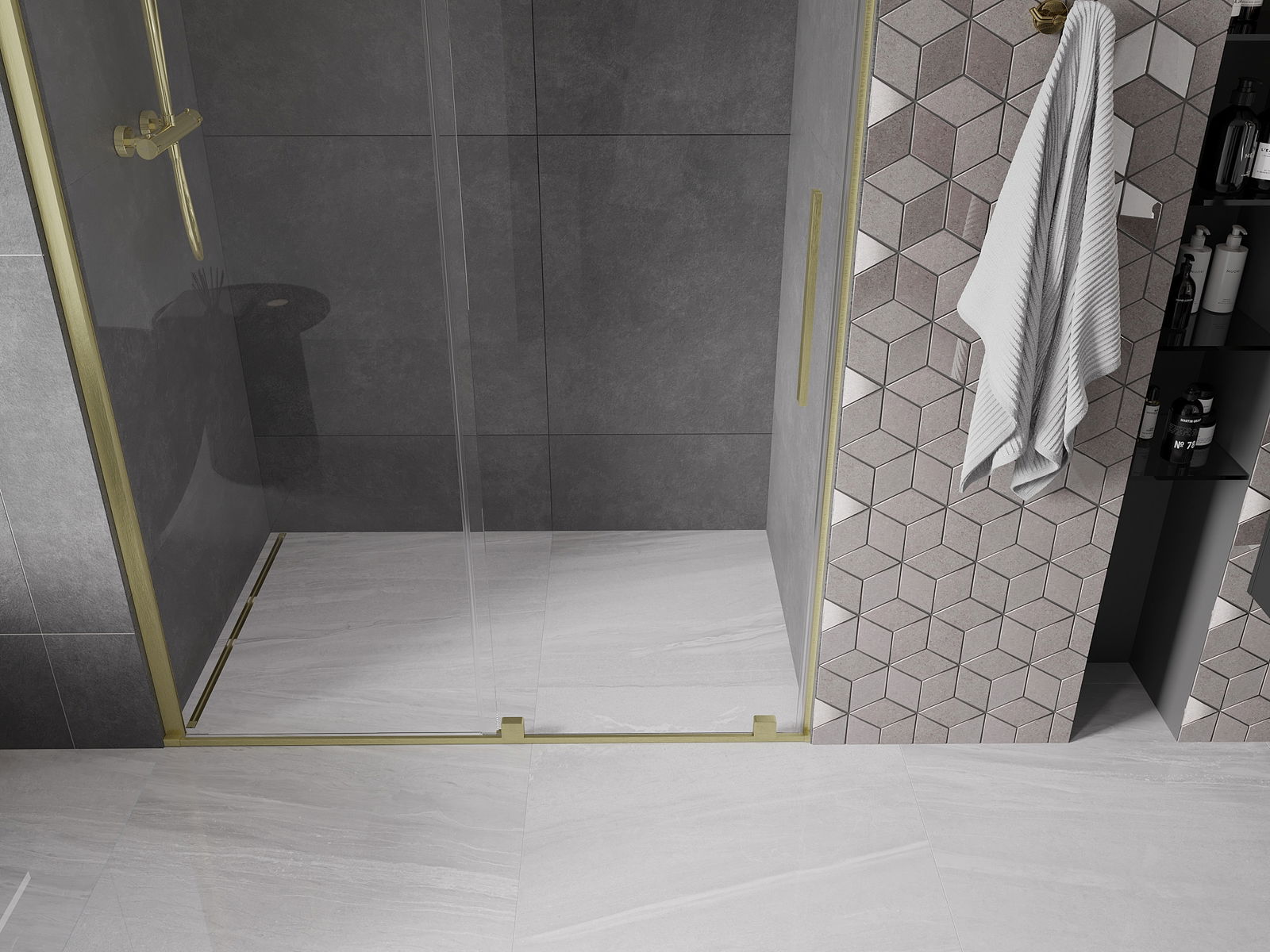 Mexen Velar uși de duș glisante 140 cm, transparente, aurii mat - 871-140-000-01-55