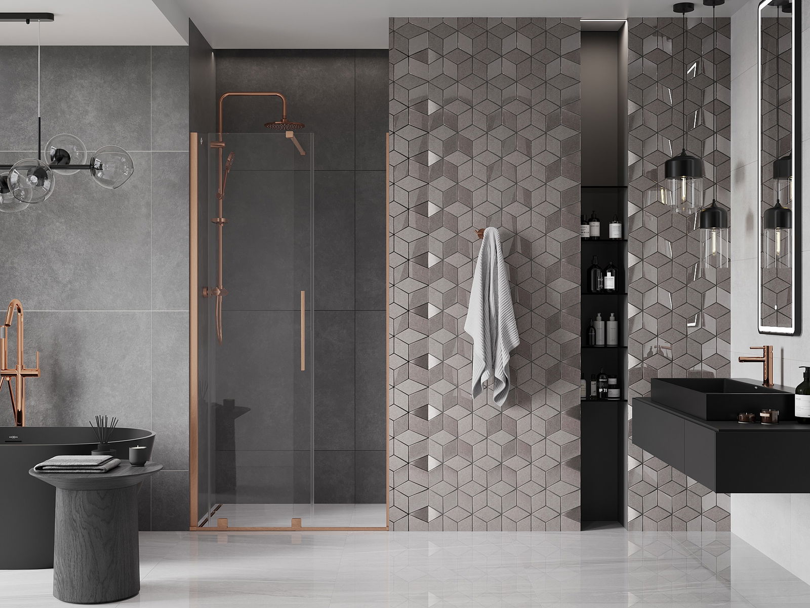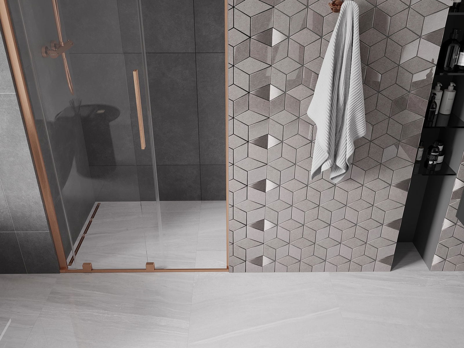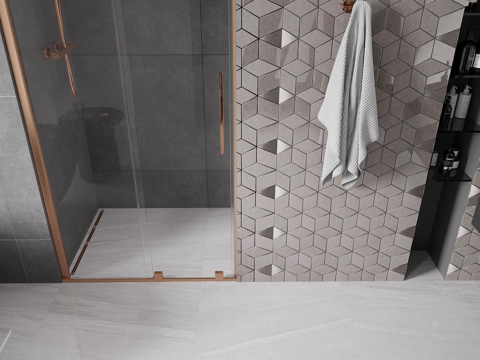 Mânerul practic și confortabil este realizat din oțel inoxidabil. Forma modernă, combinată cu un finisaj asortat cu culoarea profilelor, conferă ansamblului un aspect modern și elegant, subliniind estetica fiecărei băi.