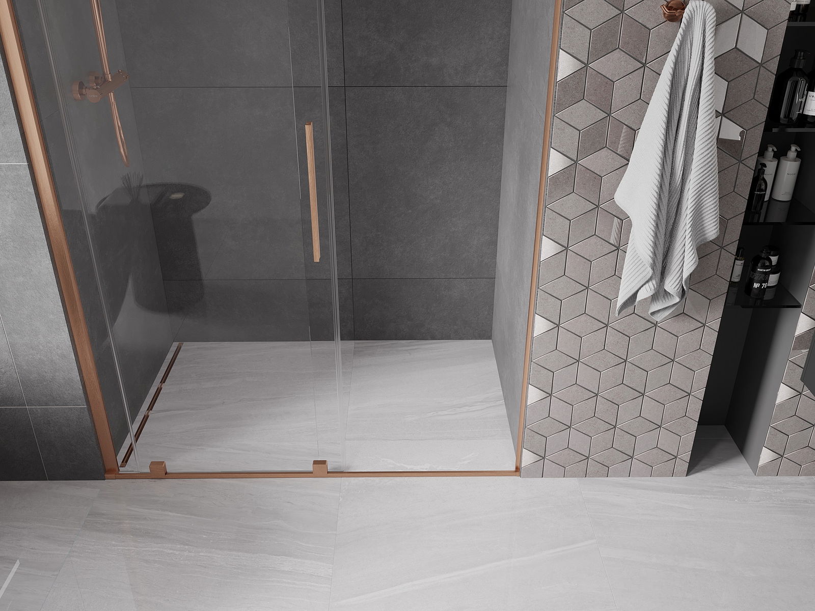 Mexen Velar uși de duș glisante 130 cm, transparent, cupru periat - 871-130-000-01-65