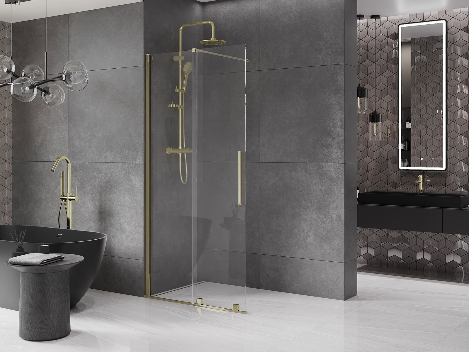 Mexen Velar perete de duș culisant Walk-in 100 x 200 cm, transparent 8 mm, auriu - 871-100-000-03-50