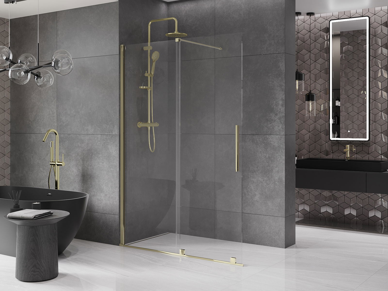 Mexen Velar panou de duș glisant Walk-in 140 x 200 cm, transparent 8 mm, auriu - 871-140-000-03-50