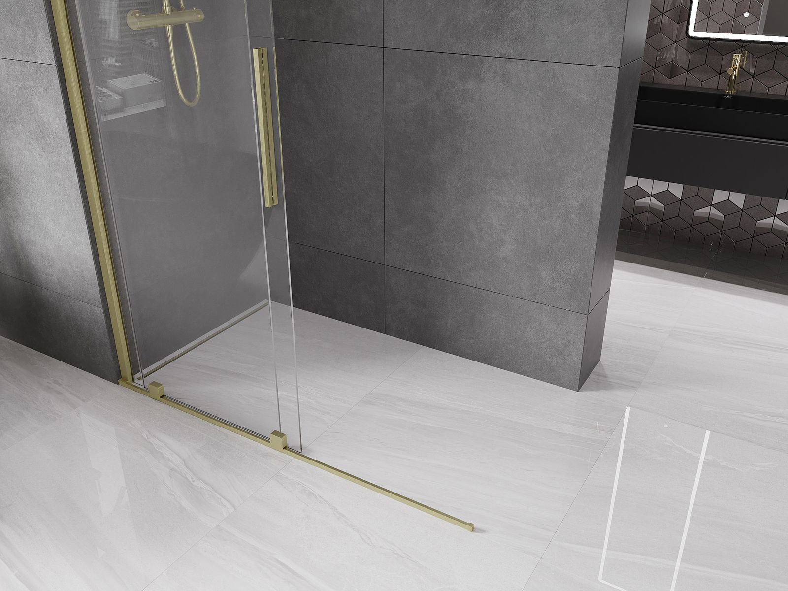 Mexen Velar perete de duș glisant Walk-in 130 x 200 cm, transparent 8 mm, auriu periat - 871-130-000-03-55