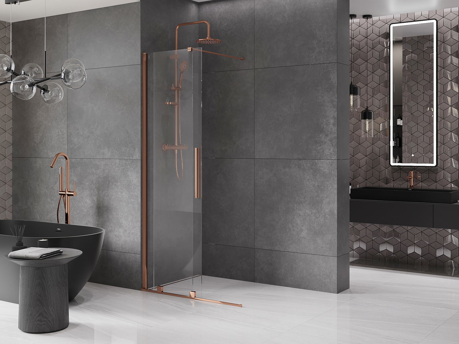 Mexen Velar perete de duș glisant Walk-in 80 x 200 cm, transparent 8 mm, aur roz - 871-080-000-03-60
