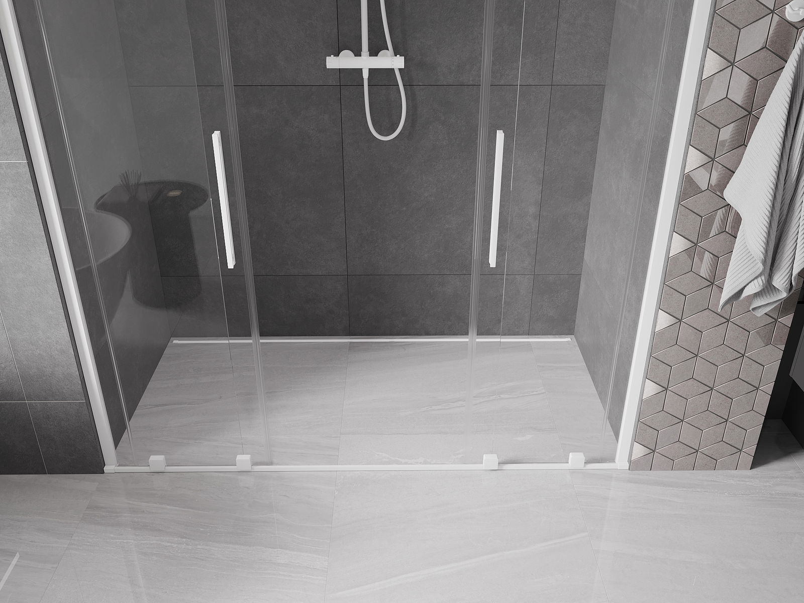 Mexen Velar Duo uși de duș glisante 180 cm, transparente, albe - 871-180-000-02-20