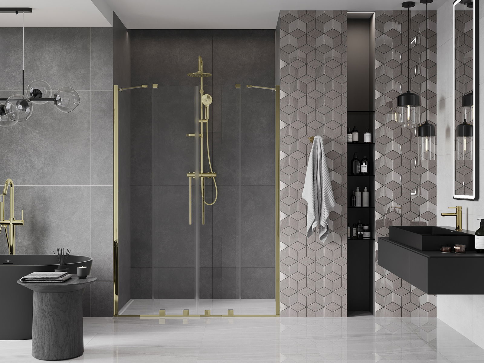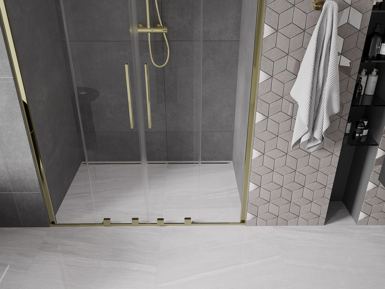 Mânerul practic și confortabil este fabricat din oțel inoxidabil. Forma la modă, combinată cu un finisaj care se potrivește cu culoarea profilelor, conferă întregului un aspect modern și elegant, îmbunătățind estetica oricărei băi.