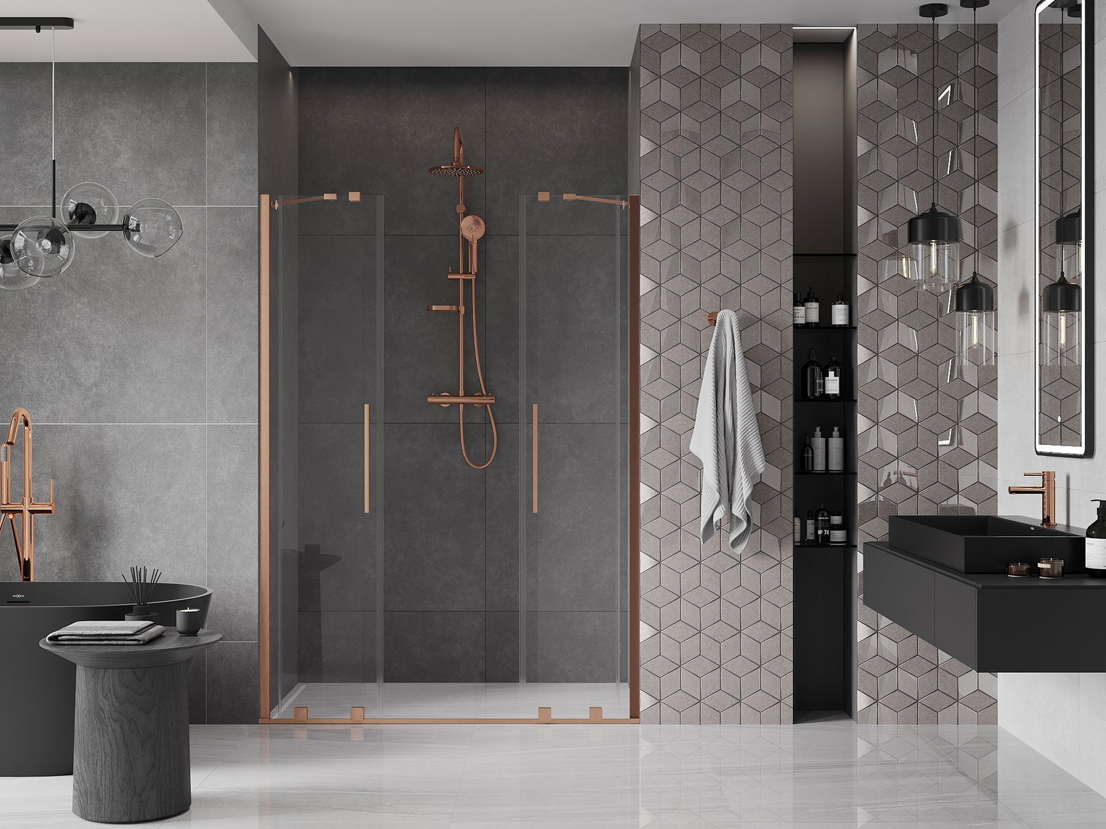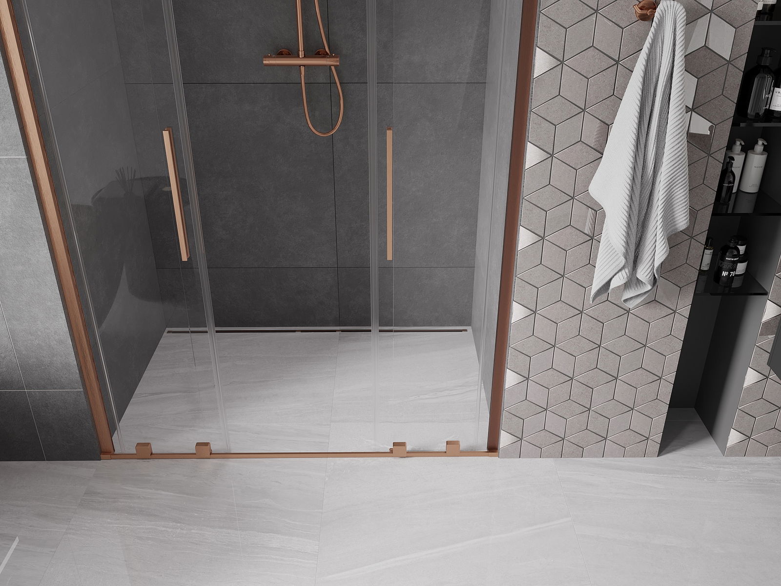 Mexen Velar Duo uși de duș glisante 150 cm, transparent, cupru periat - 871-150-000-02-65
