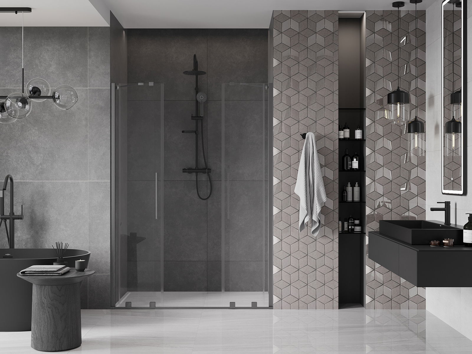 Mânerul practic și confortabil este fabricat din oțel inoxidabil. Forma la modă, combinată cu un finisaj care se potrivește cu culoarea profilelor, conferă întregului un aspect modern și elegant, îmbunătățind estetica oricărei băi.