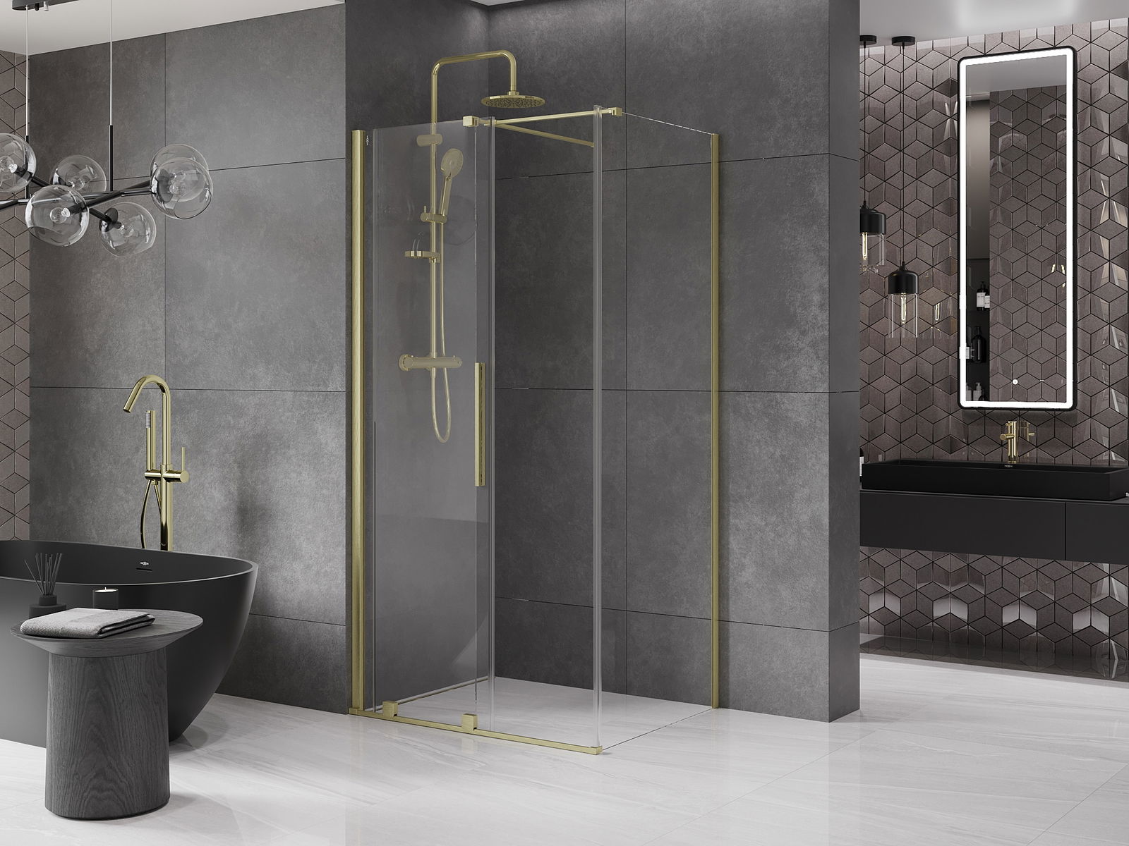 Mexen Velar cabină de duș glisantă 130 x 90 cm, transparentă, aurie periată - 871-130-090-01-55