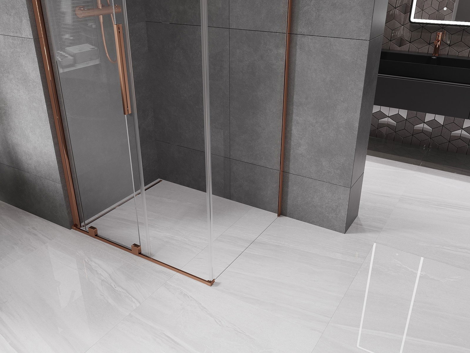 Mexen Velar cabină de duș glisantă 100 x 90 cm, transparent, aur roz - 871-100-090-01-60