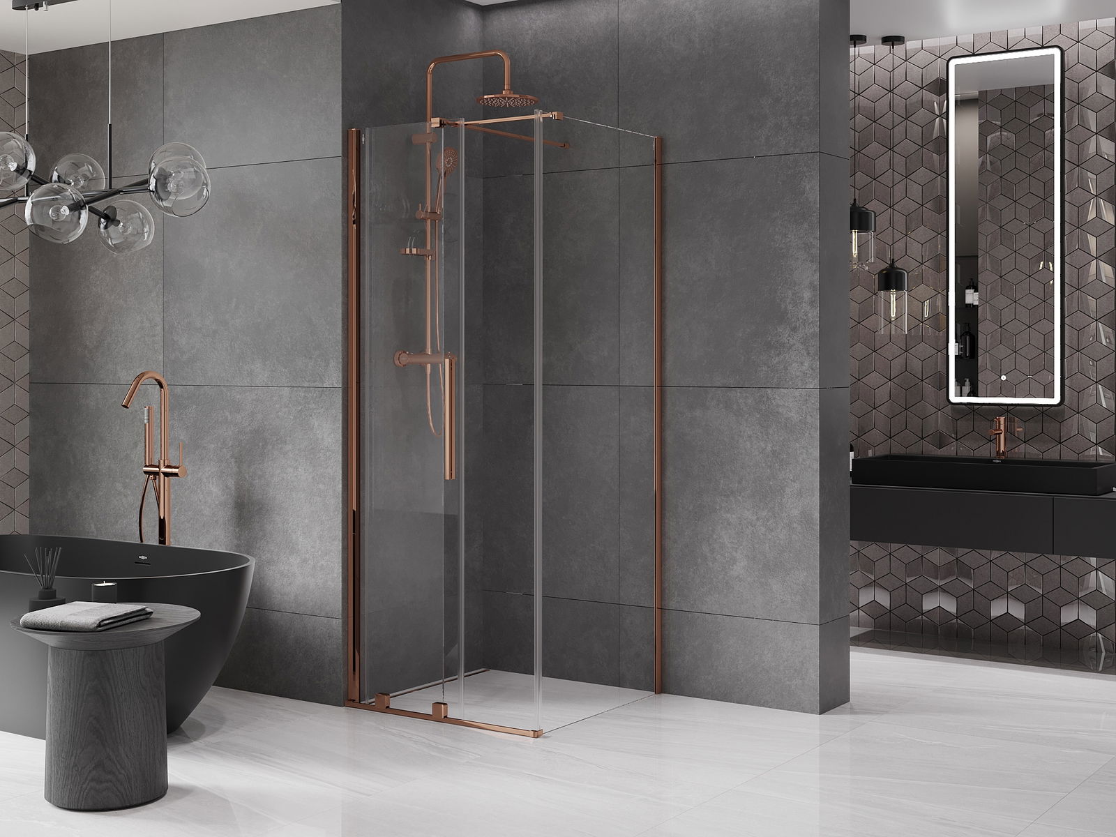 Mexen Velar cabină de duș glisantă 120 x 120 cm, transparentă, aur roz - 871-120-120-01-60