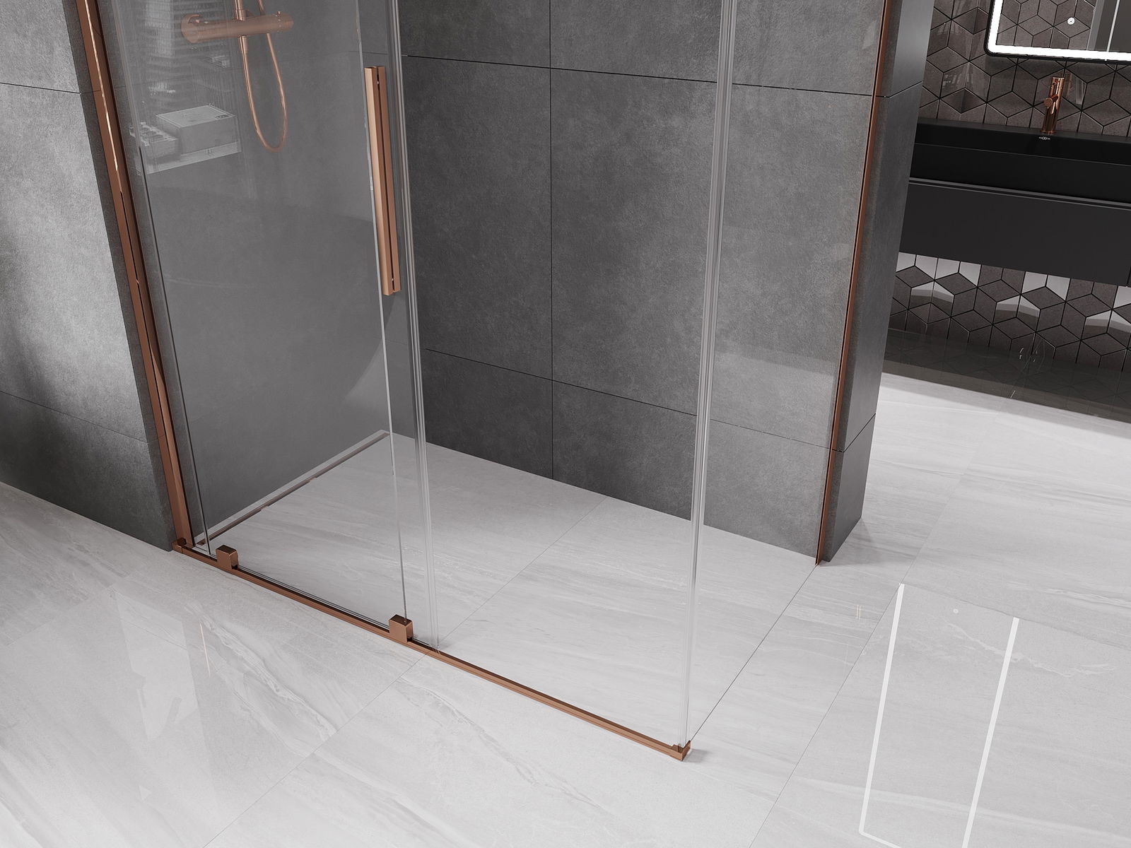 Mânerul practic și confortabil este realizat din oțel inoxidabil. Forma modernă, combinată cu un finisaj asortat cu culoarea profilelor, conferă ansamblului un aspect modern și elegant, subliniind estetica fiecărei băi.