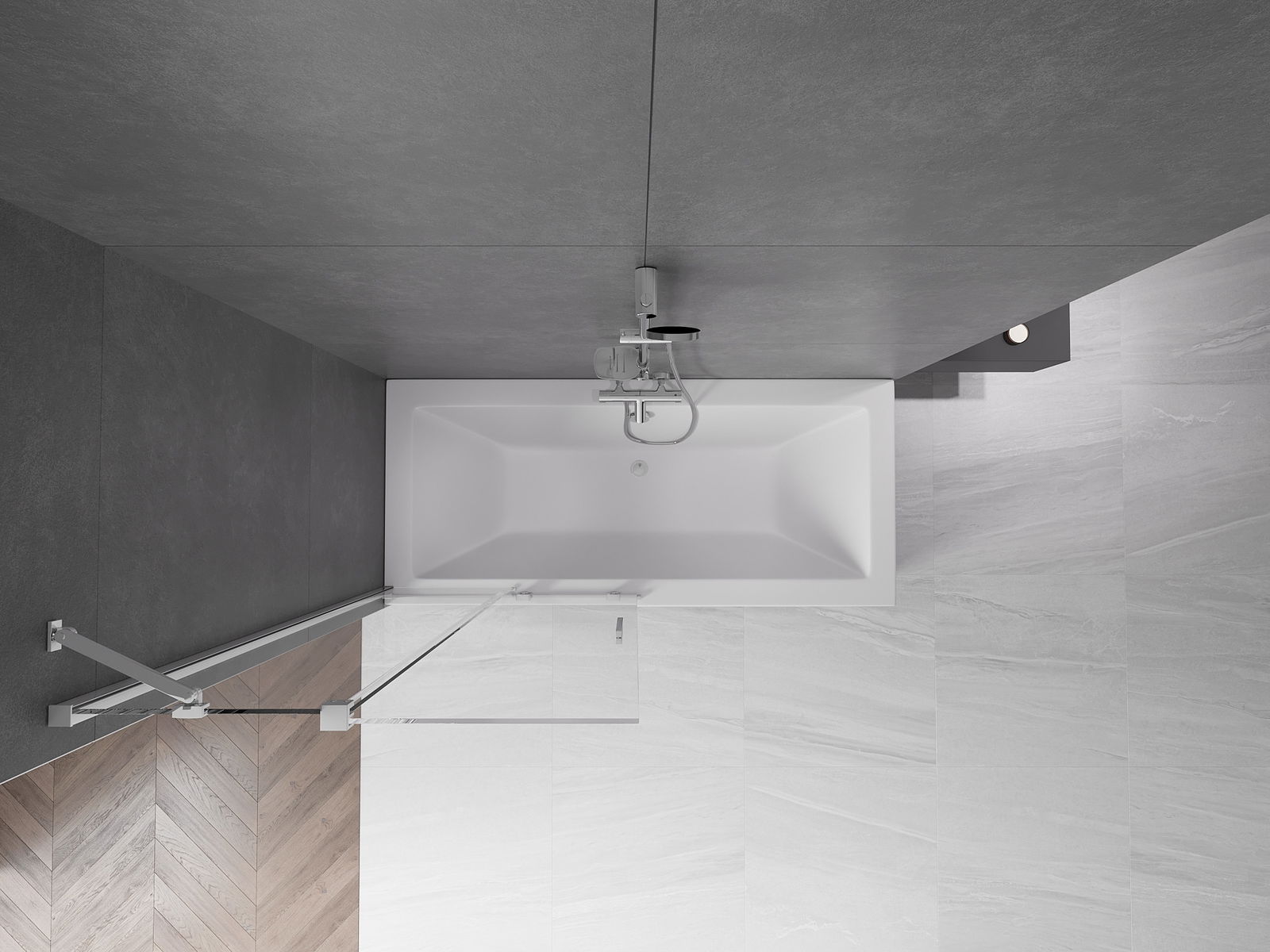 O protecție eficientă împotriva vărsării apei în timpul băii. Paravanul are garnituri care se potrivesc perfect cu suprafața de sticlă și marginea căzii. O soluție funcțională care asigură siguranță și întreținere ușoară a curățeniei.