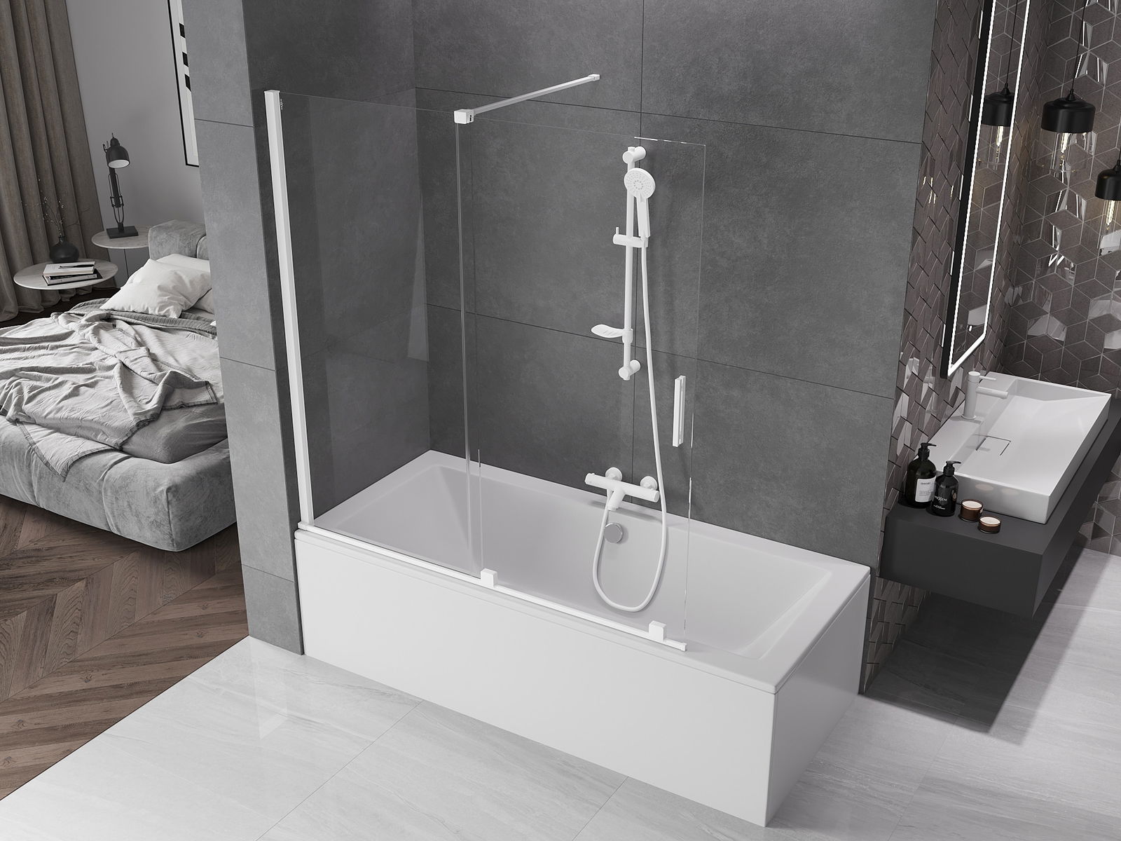 Protecție eficientă împotriva vărsării apei în timpul scăldării. Ecranul are sigilii care se adaptează perfect la sticla din sticlă și marginea carii. O soluție funcțională care asigură siguranță și întreținere ușoară.