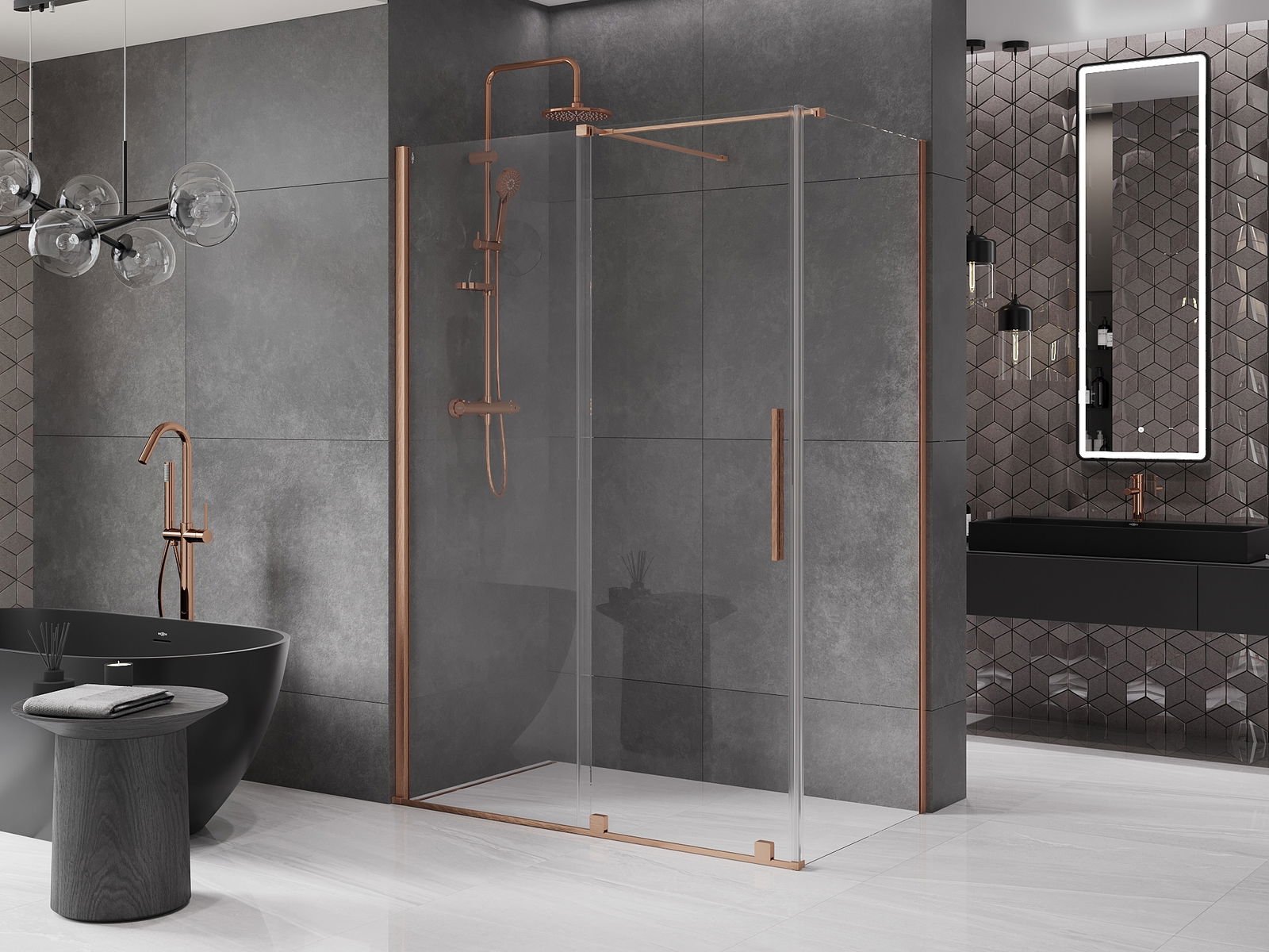 Mexen Velar cabină de duș culisantă 150 x 75 cm, transparentă, cupru periat - 871-150-075-01-65