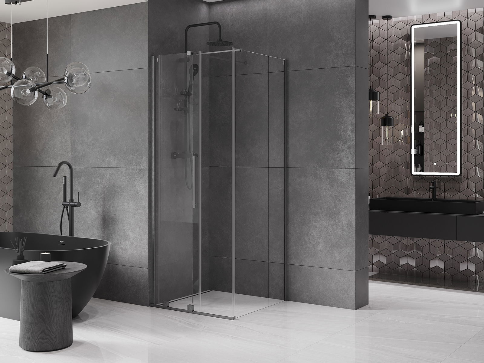 Mexen Velar cabină de duș culisantă 90 x 90 cm, transparentă, gri armă periat - 871-090-090-01-66