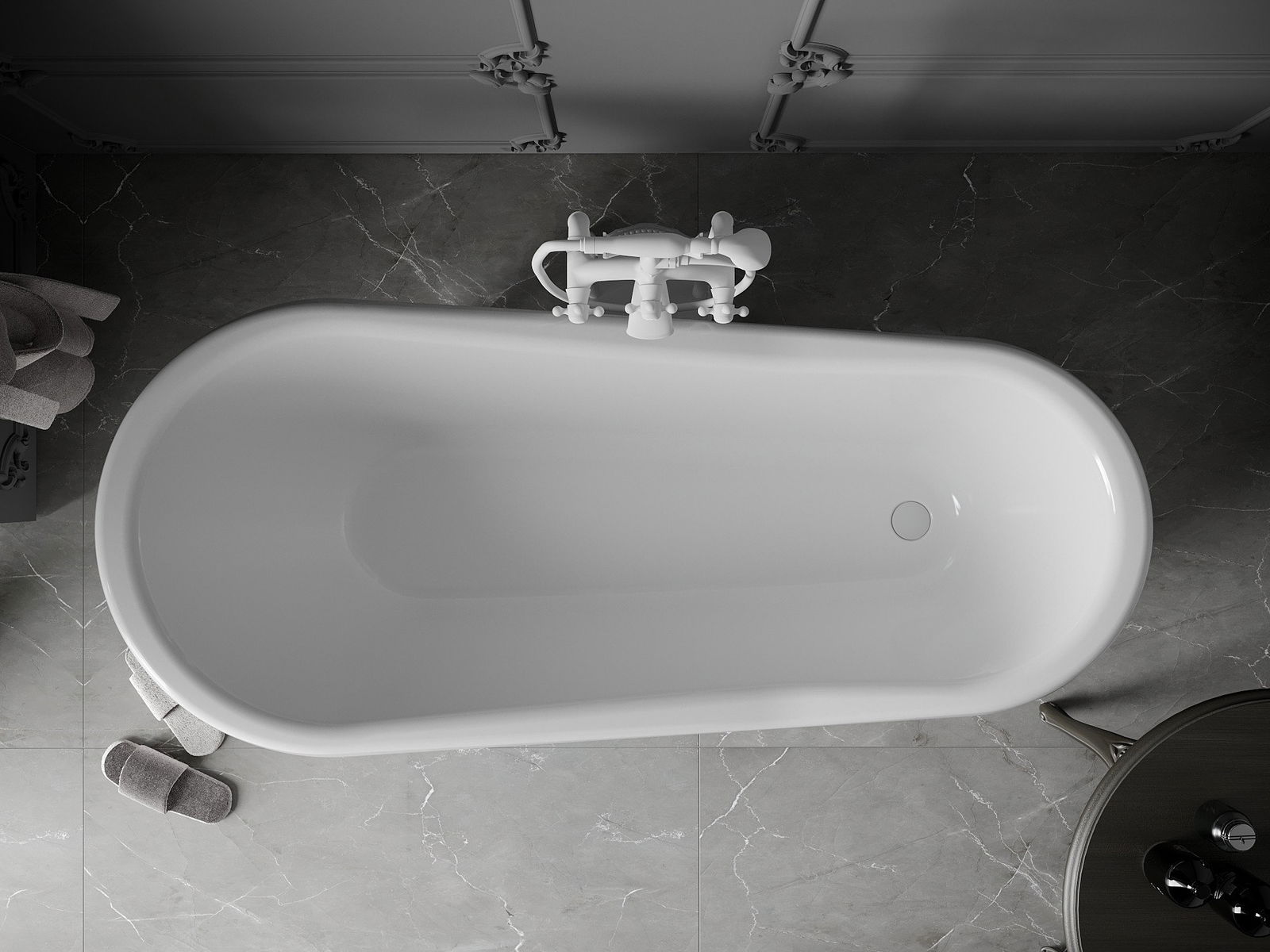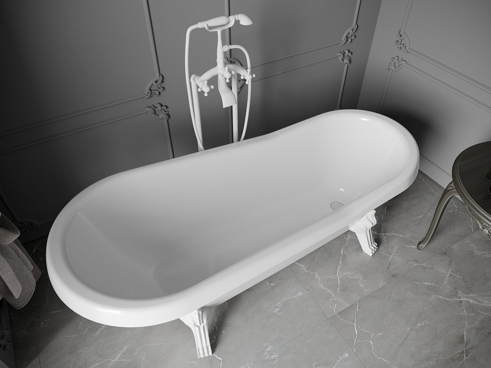 Bătul este echipat cu picioare reglabile care vă permit să nivelați cada chiar și pe o suprafață neuniformă. O soluție practică care asigură o stabilitate și siguranță mai mare în timpul utilizării și ușurinței instalării.