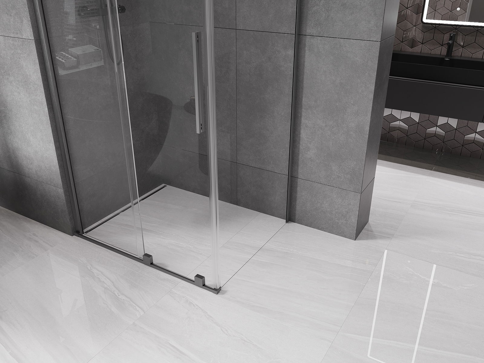 Mânerul practic și confortabil este realizat din oțel inoxidabil. Forma modernă, combinată cu un finisaj asortat cu culoarea profilelor, conferă ansamblului un aspect modern și elegant, subliniind estetica fiecărei băi.