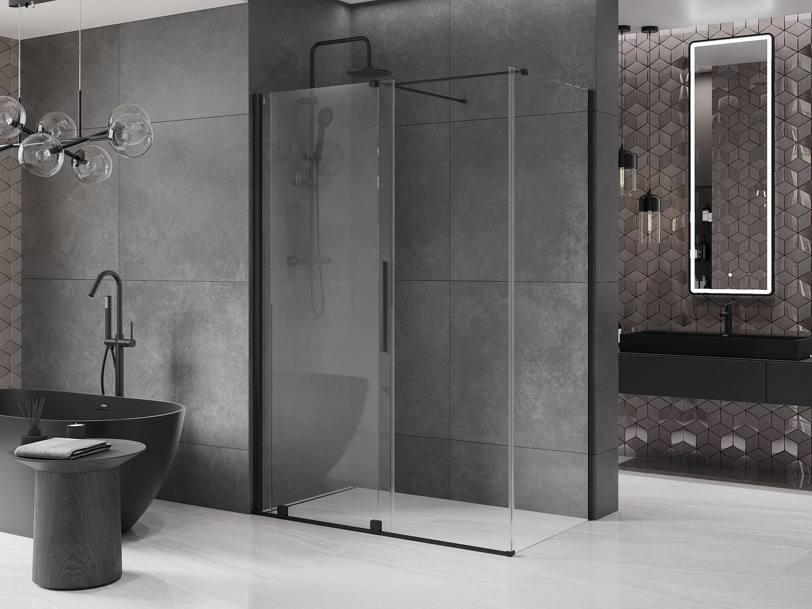Mânerul practic și confortabil este realizat din oțel inoxidabil. Forma modernă, combinată cu un finisaj asortat cu culoarea profilelor, conferă ansamblului un aspect modern și elegant, subliniind estetica fiecărei băi.