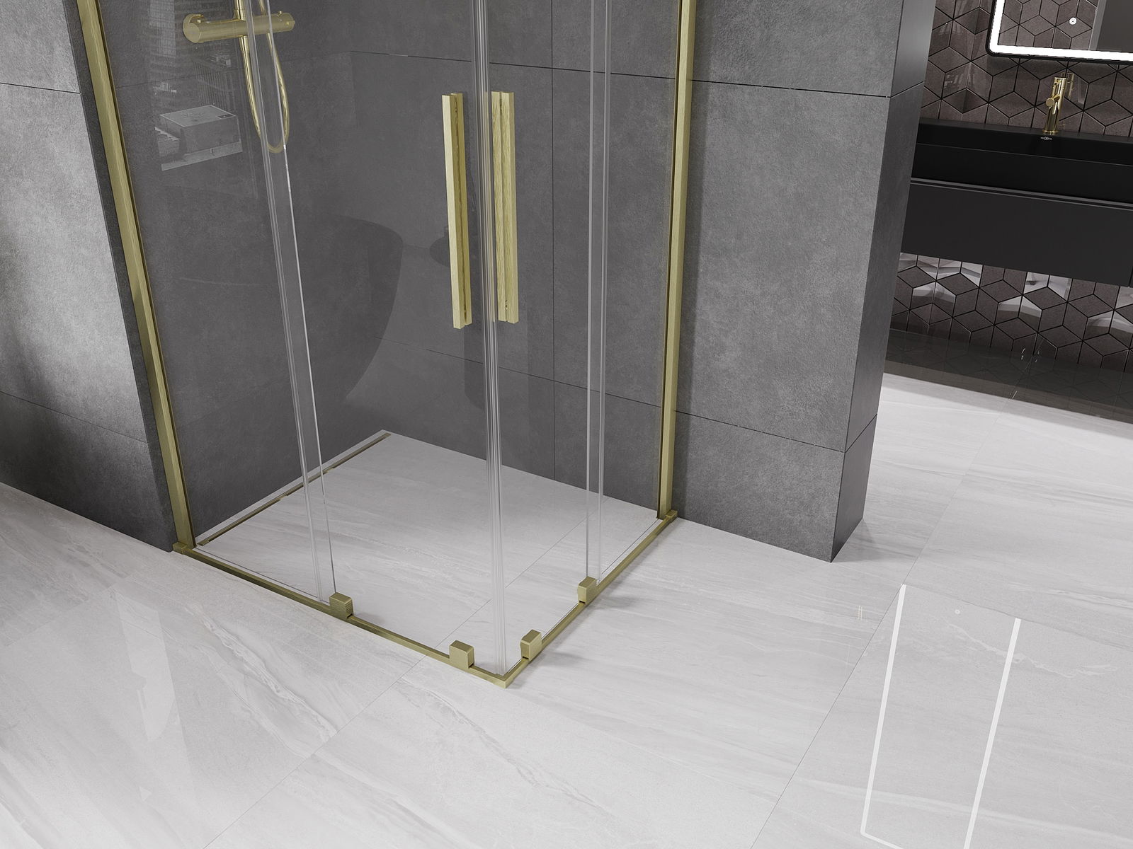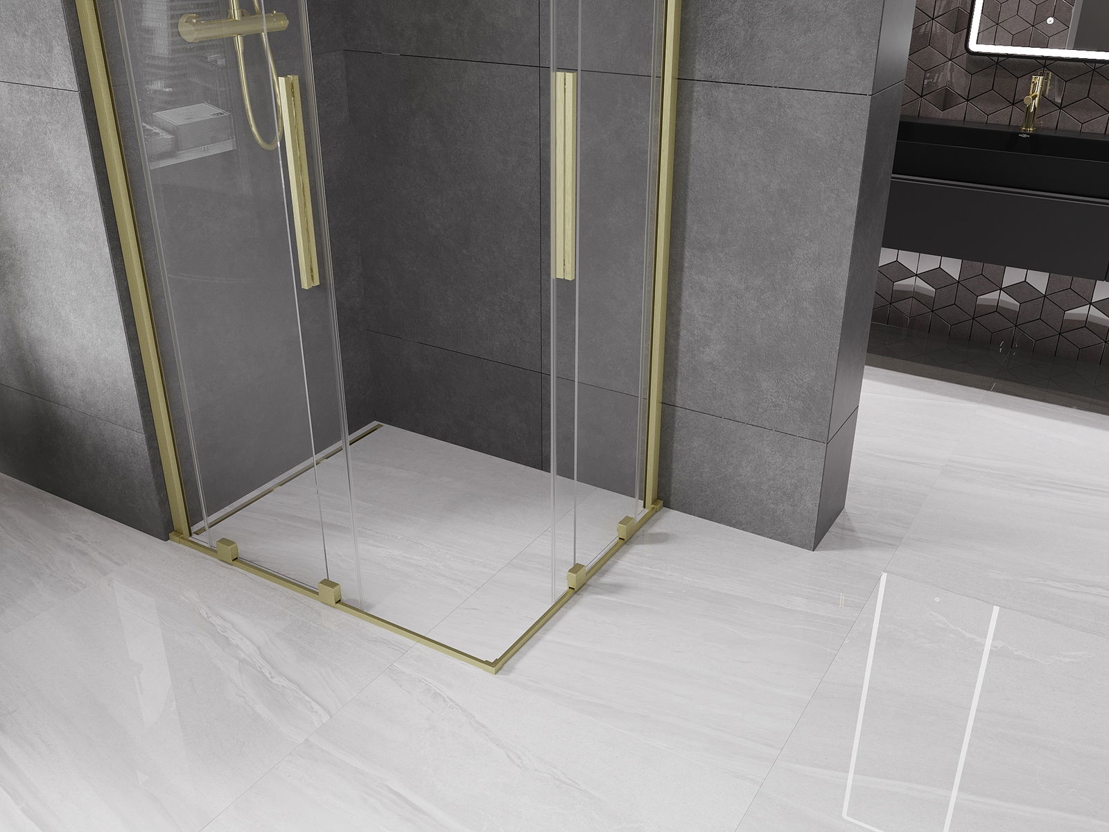 Mexen Velar Duo cabină de duș culisantă 90 x 80 cm, transparentă, auriu periat - 871-090-080-02-55