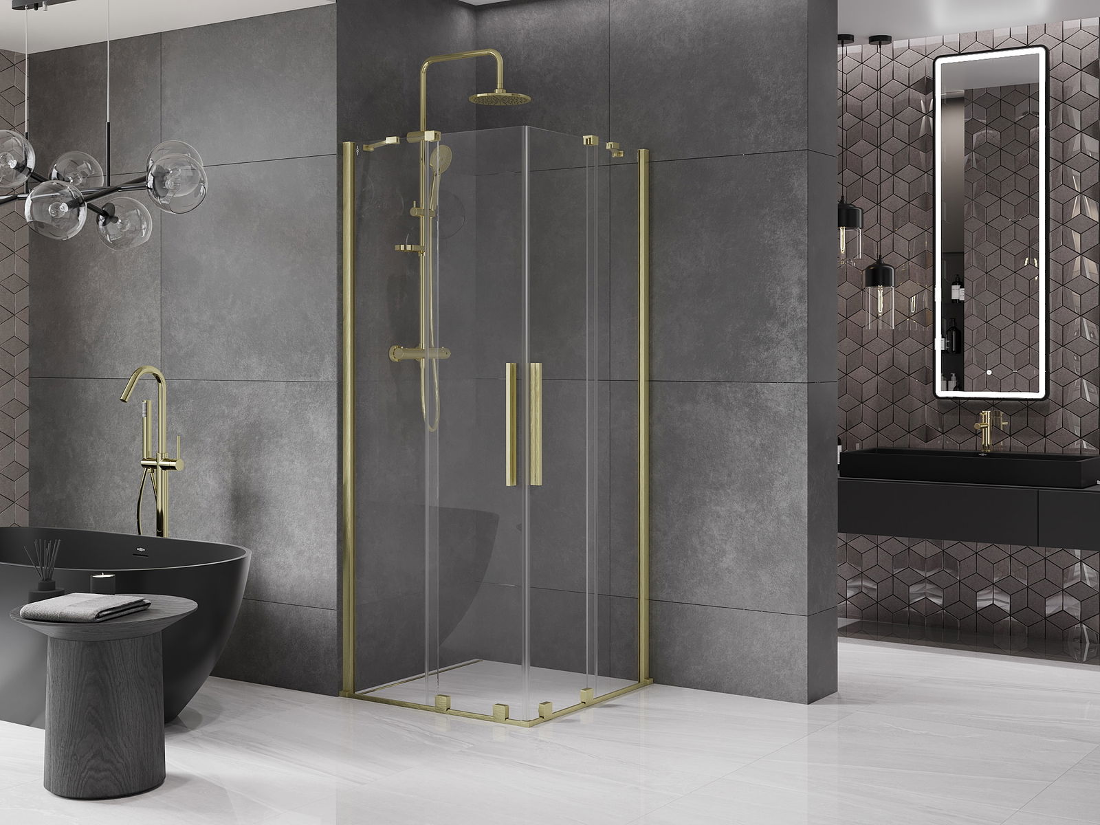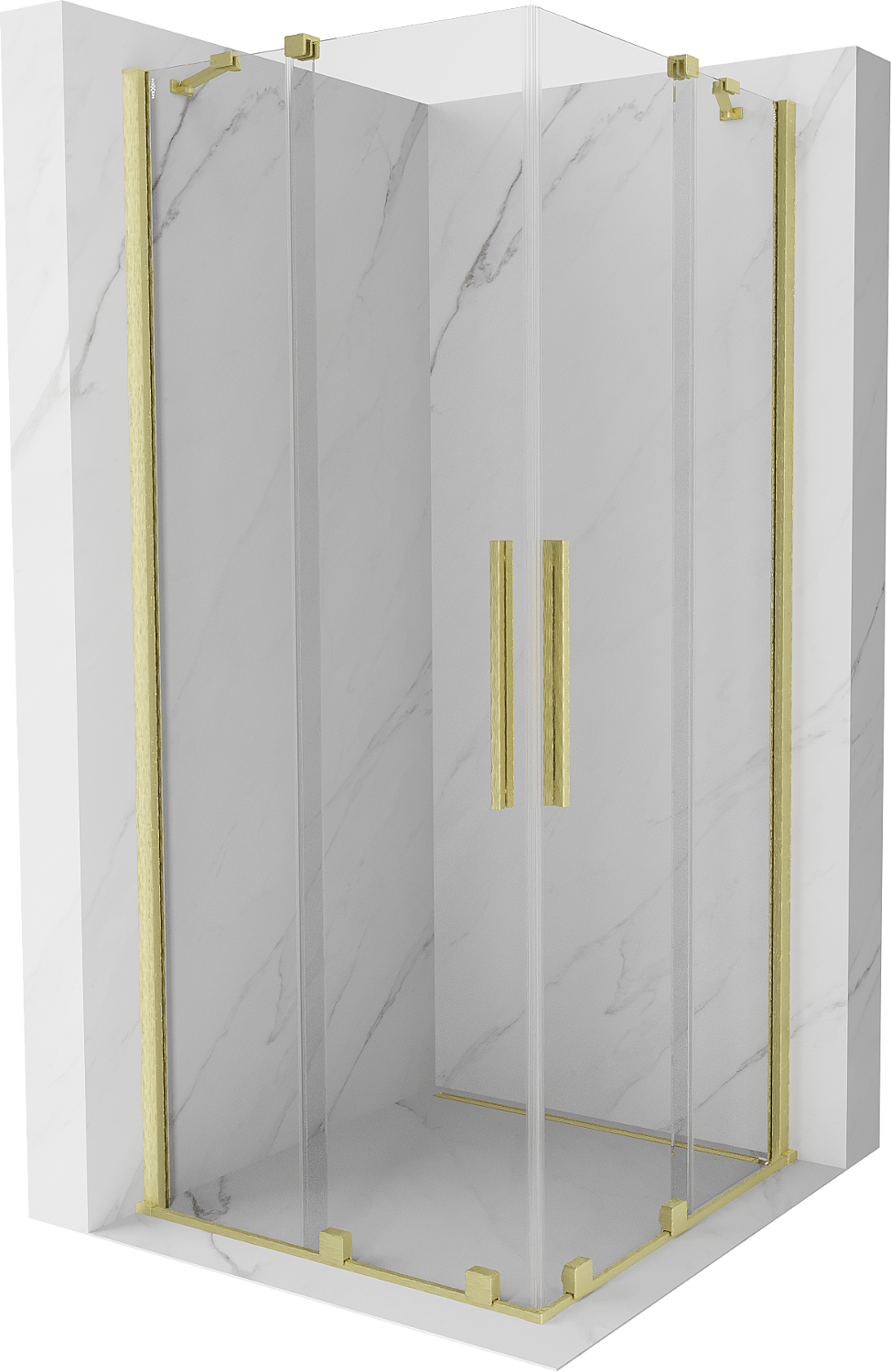 Mexen Velar Duo cabină de duș culisantă 100 x 100 cm, transparentă, aurie periată - 871-100-100-02-55