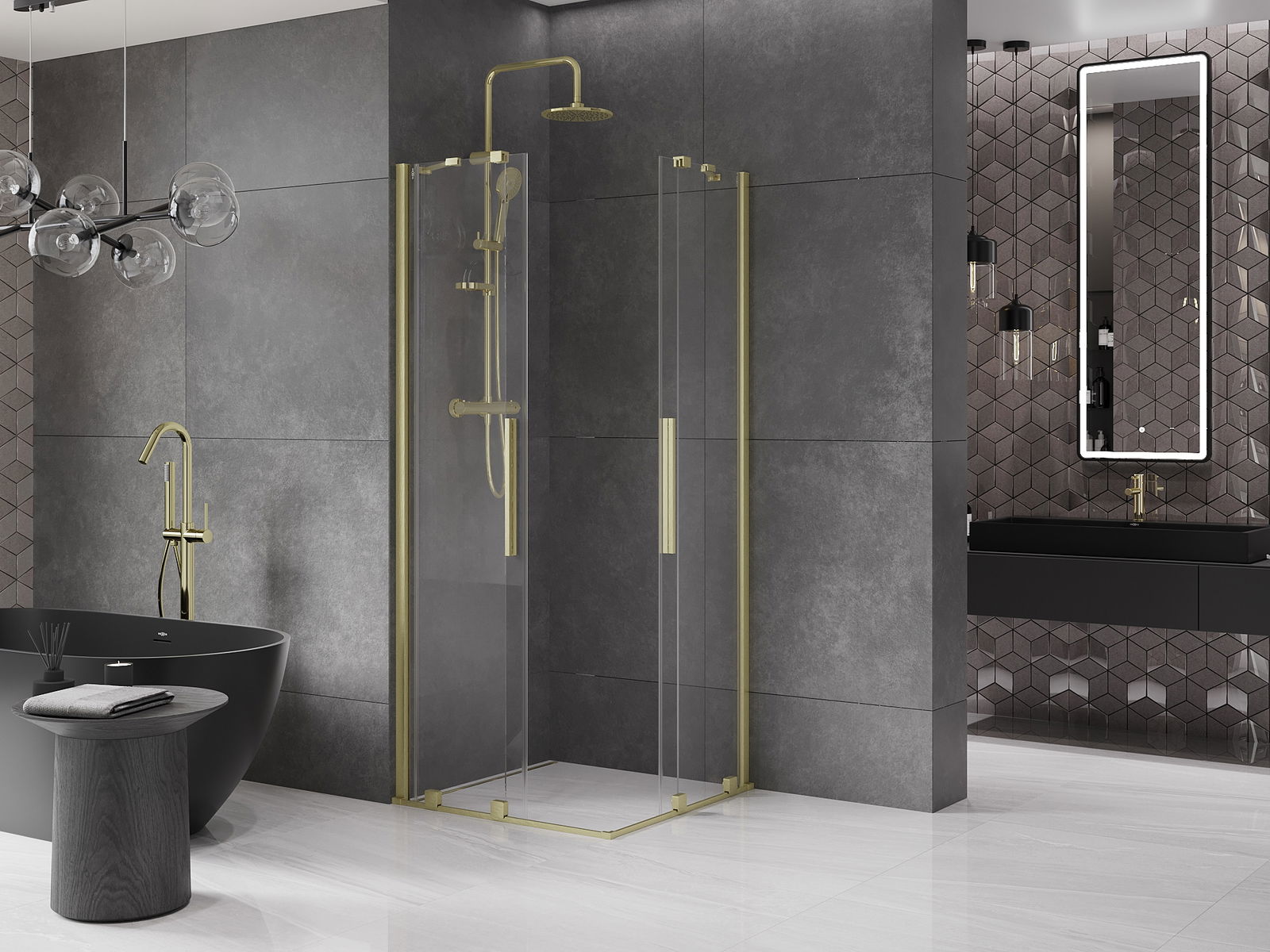Mânerul practic și confortabil este fabricat din oțel inoxidabil. Forma la modă, combinată cu un finisaj care se potrivește cu culoarea profilelor, conferă întregului un aspect modern și elegant, îmbunătățind estetica oricărei băi.