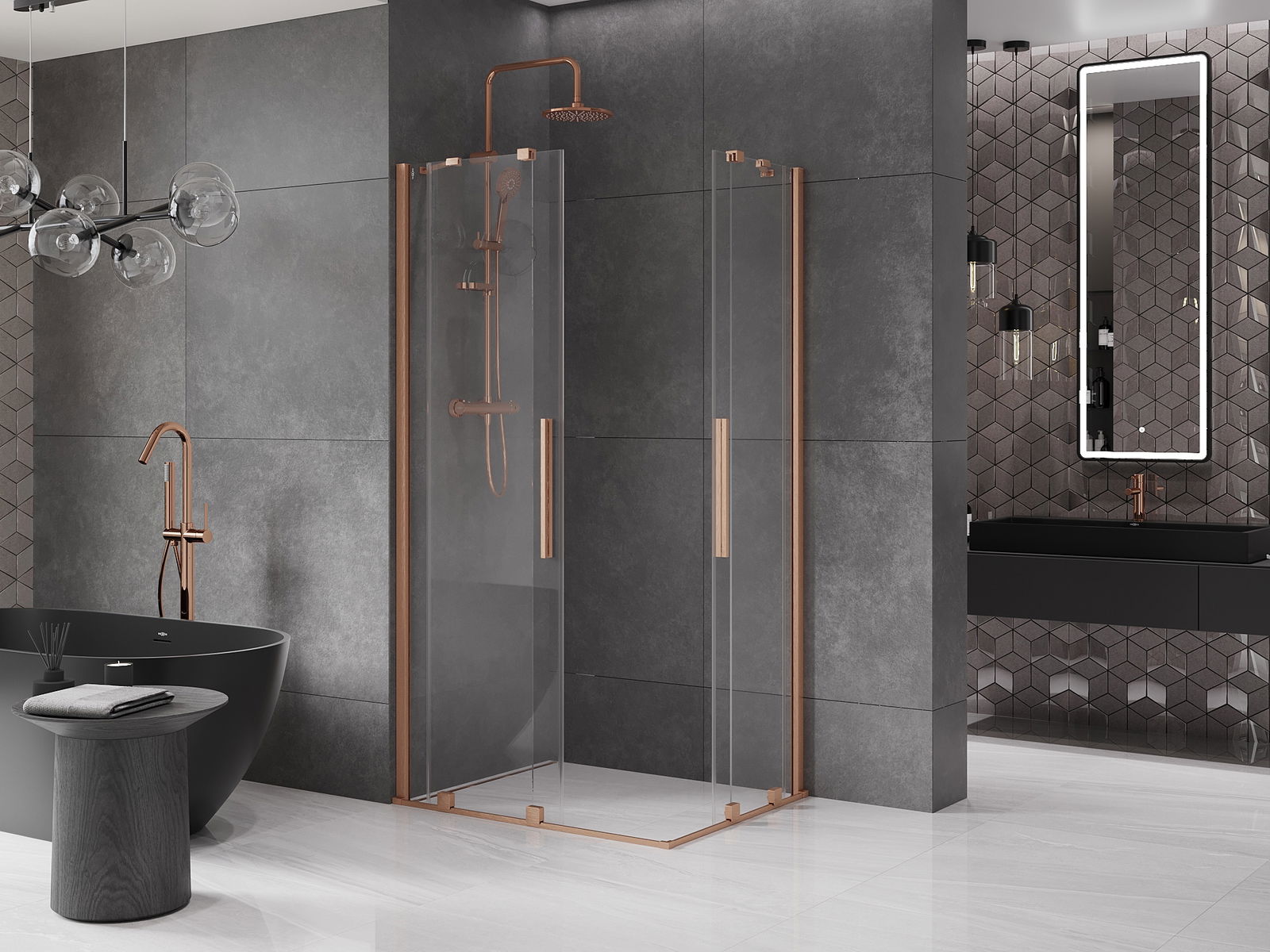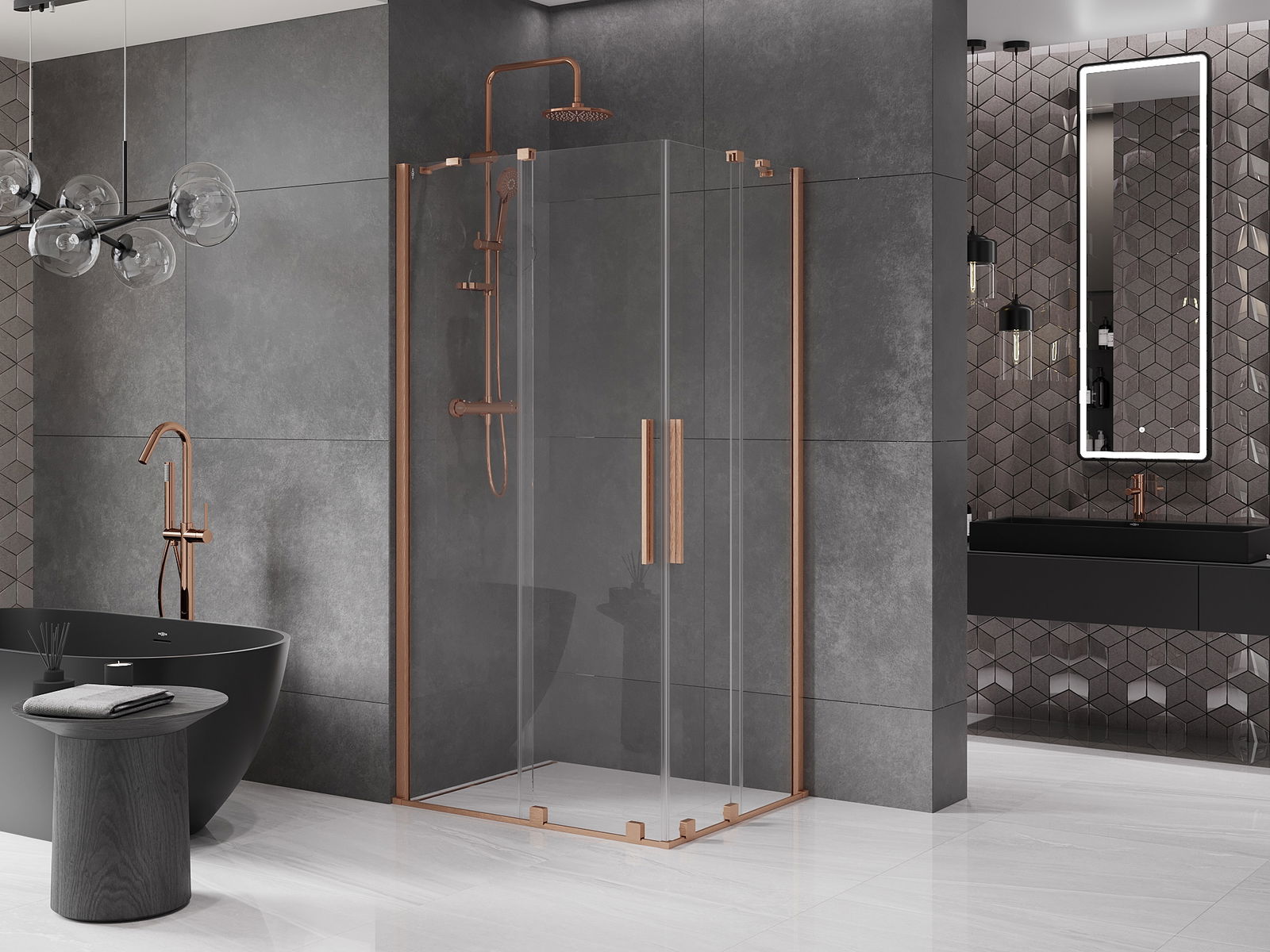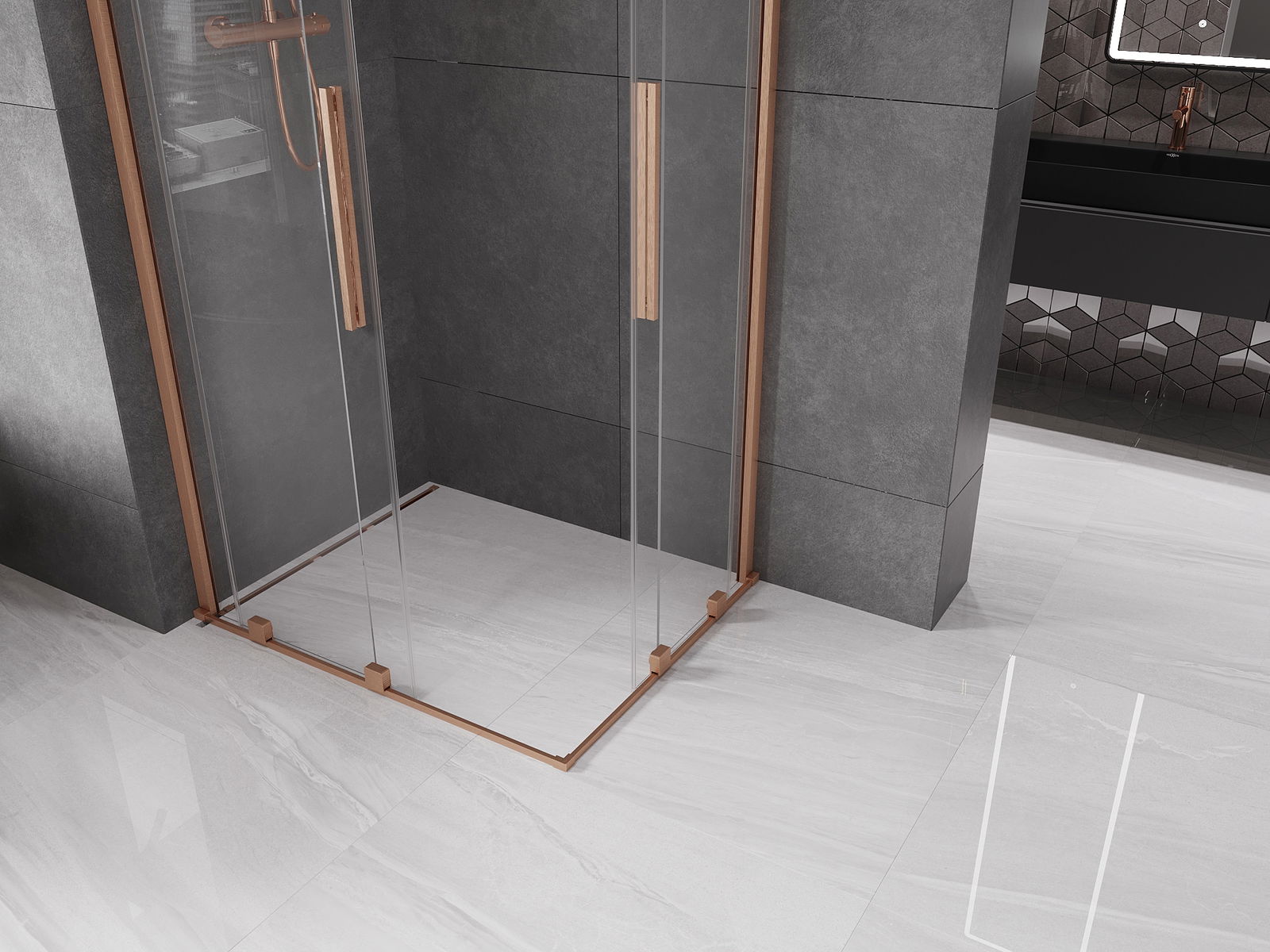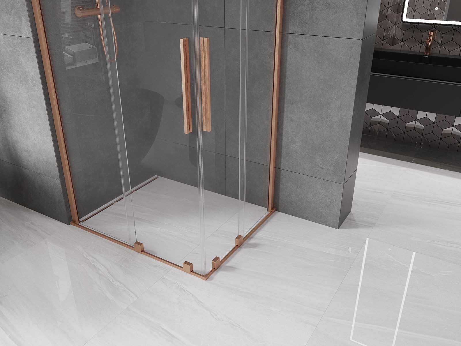 Mexen Velar Duo cabină de duș glisantă 90 x 80 cm, transparentă, cupru periat - 871-090-080-02-65