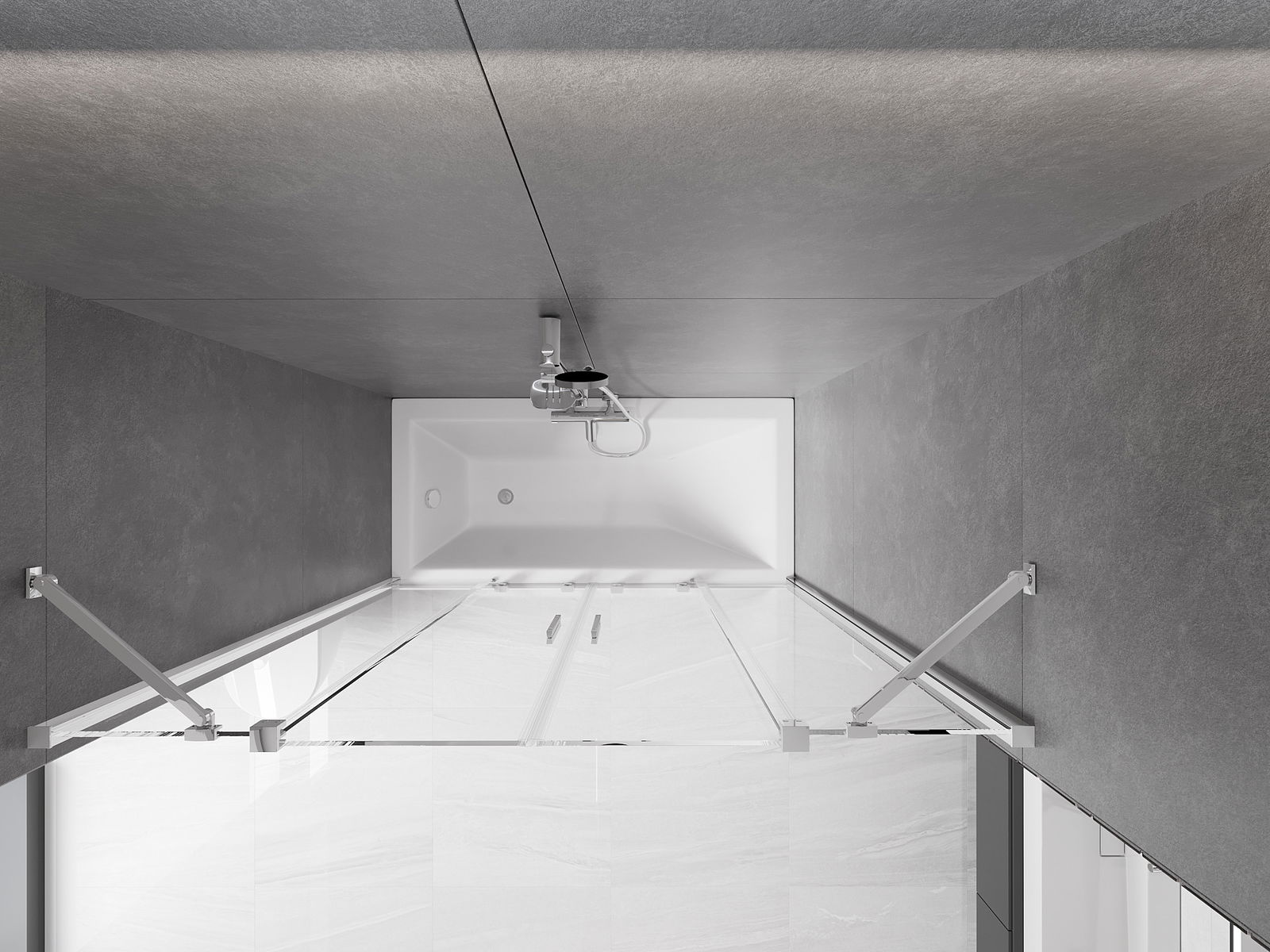 O protecție eficientă împotriva vărsării apei în timpul băii. Paravanul are garnituri care se potrivesc perfect cu suprafața de sticlă și marginea căzii. O soluție funcțională care asigură siguranță și întreținere ușoară a curățeniei.