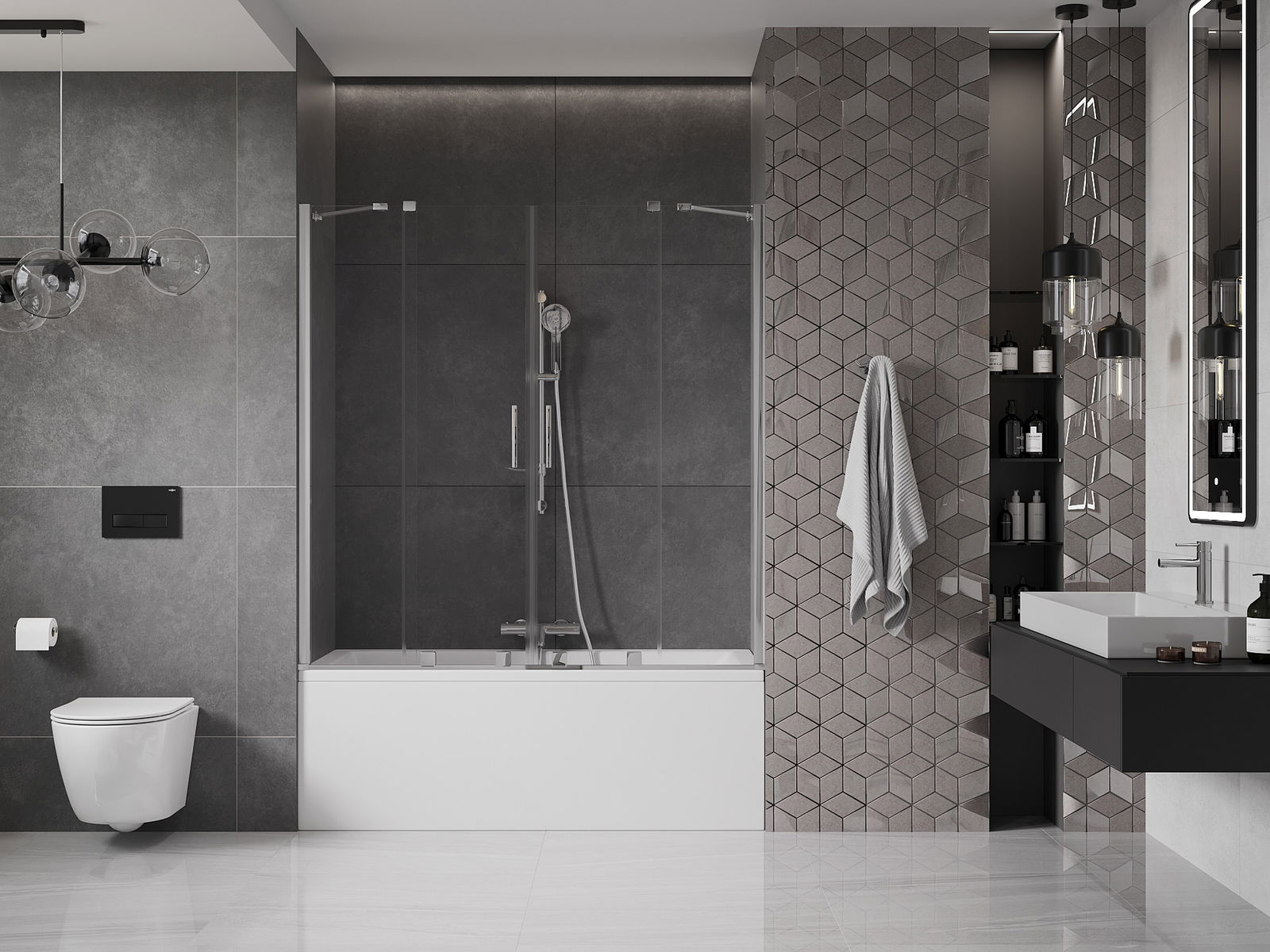 Folosind un sistem de fixare universală, ecranul poate fi montat pe dreapta sau la stânga, în funcție de nevoile dvs. În acest fel, puteți proiecta cu ușurință un duș adaptat la spațiul de baie.