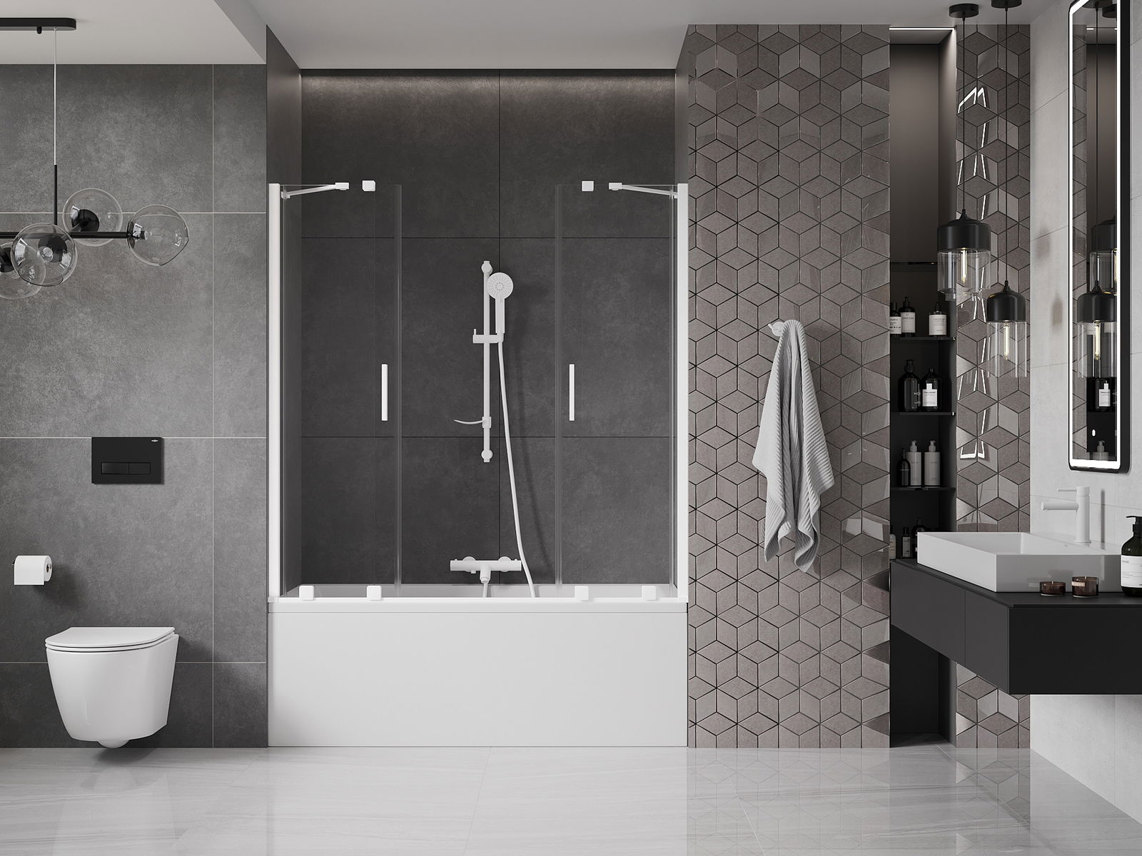 Mexen Velar Duo paravan de cadă cu 2 panouri glisante 140 x 150 cm, transparent, alb - 896-140-000-02-20