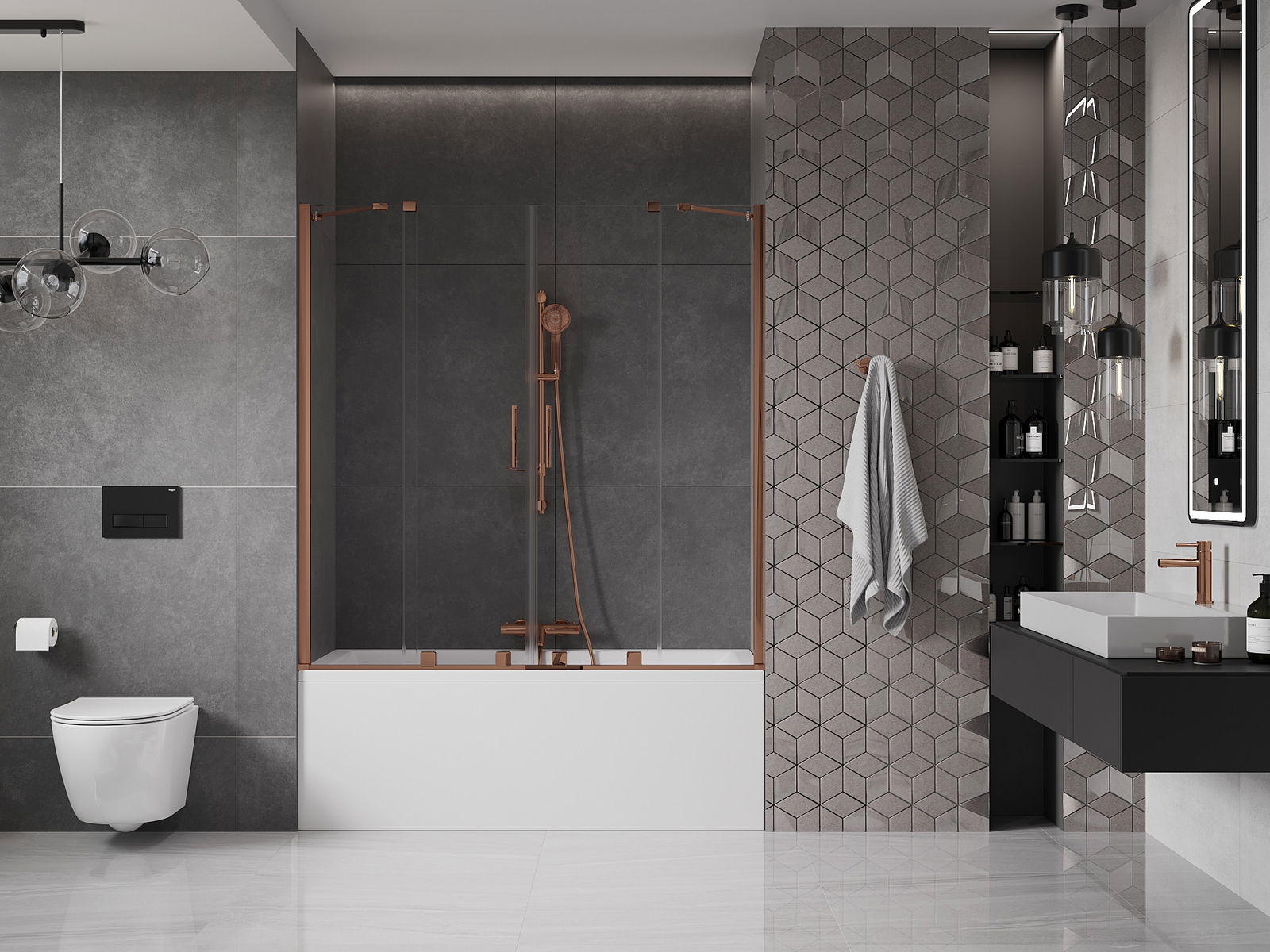Mexen Velar Duo paravan pentru cadă cu 2 aripi glisante 160 x 150 cm, transparent, aur roz - 896-160-000-02-60