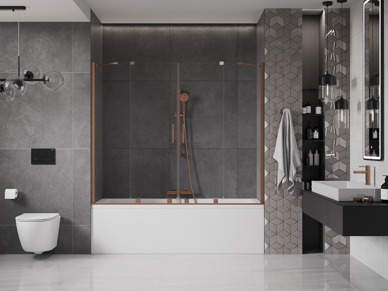Mexen Velar Duo paravan de cadă cu 2 aripi glisante 200 x 150 cm, transparent, cupru periat - 896-200-000-02-65