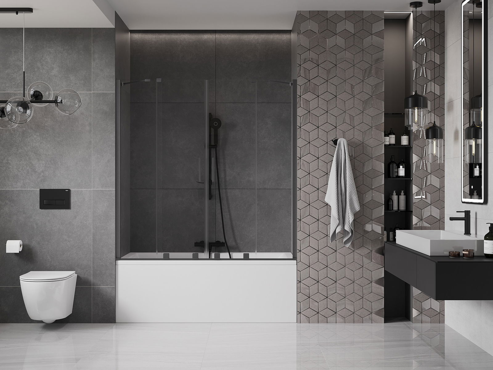 Protecție eficientă împotriva vărsării apei în timpul scăldării. Ecranul are sigilii care se adaptează perfect la sticla din sticlă și marginea carii. O soluție funcțională care asigură siguranță și întreținere ușoară.