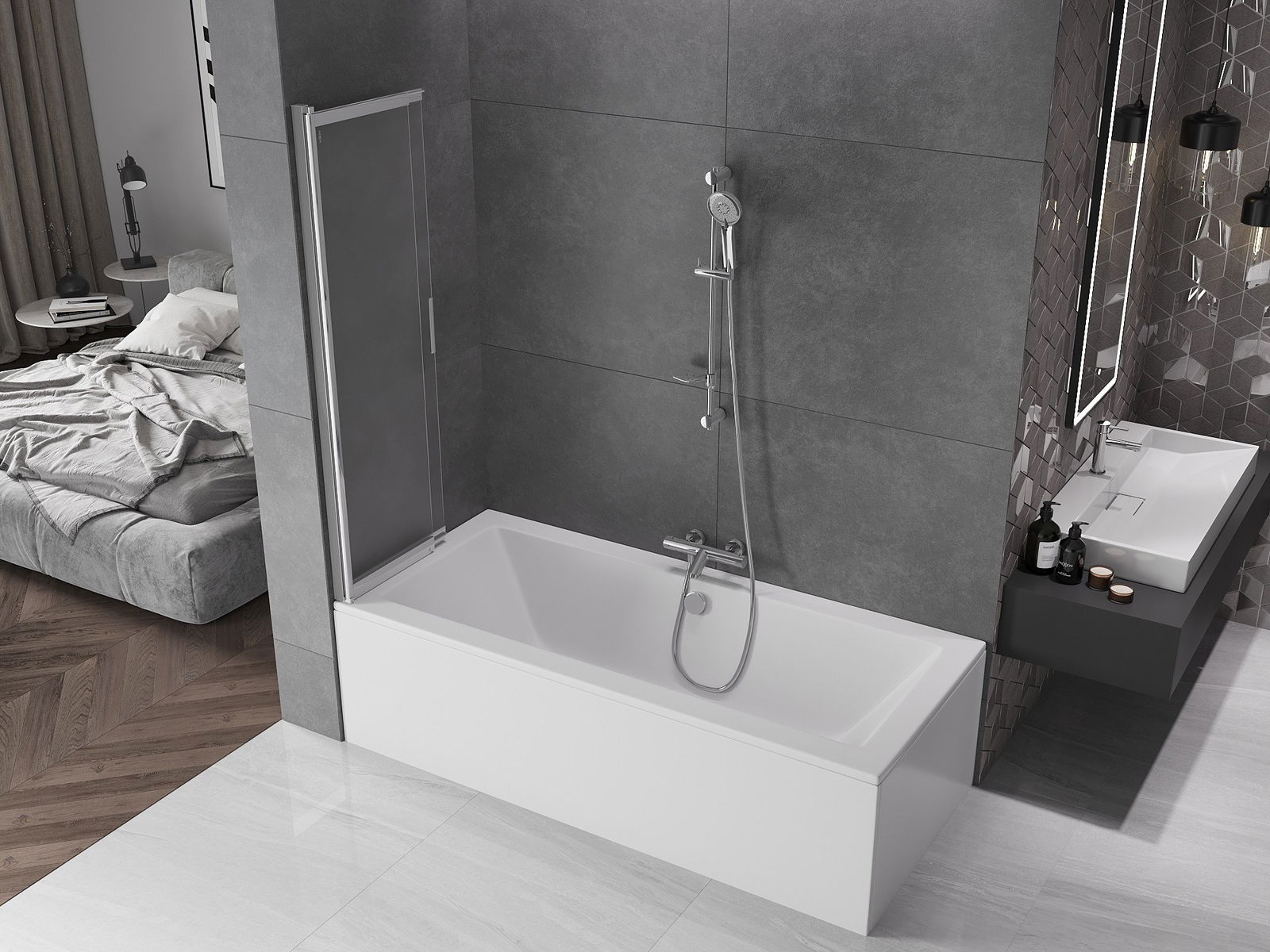 Protecție eficientă împotriva vărsării apei în timpul scăldării. Ecranul are sigilii care se adaptează perfect la sticla din sticlă și marginea carii. O soluție funcțională care asigură siguranță și întreținere ușoară.