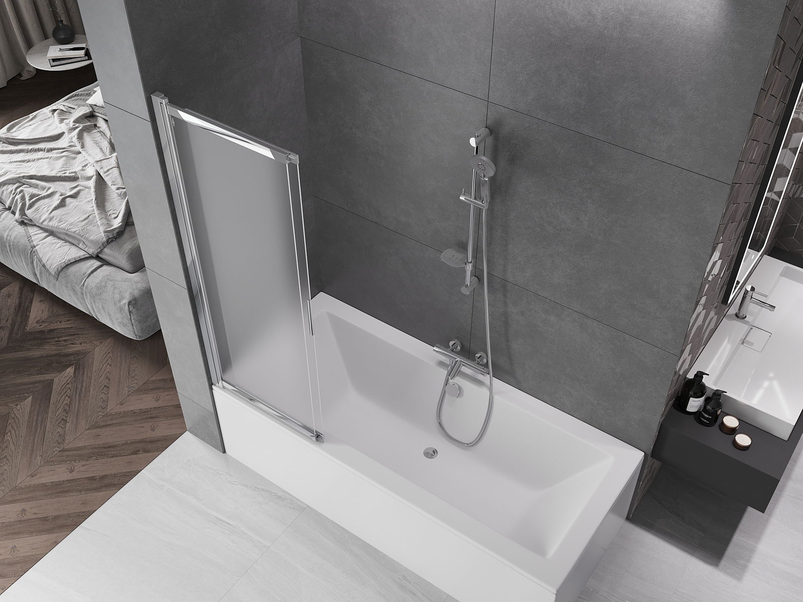 Protecție eficientă împotriva vărsării apei în timpul scăldării. Ecranul are sigilii care se adaptează perfect la sticla din sticlă și marginea carii. O soluție funcțională care asigură siguranță și întreținere ușoară.