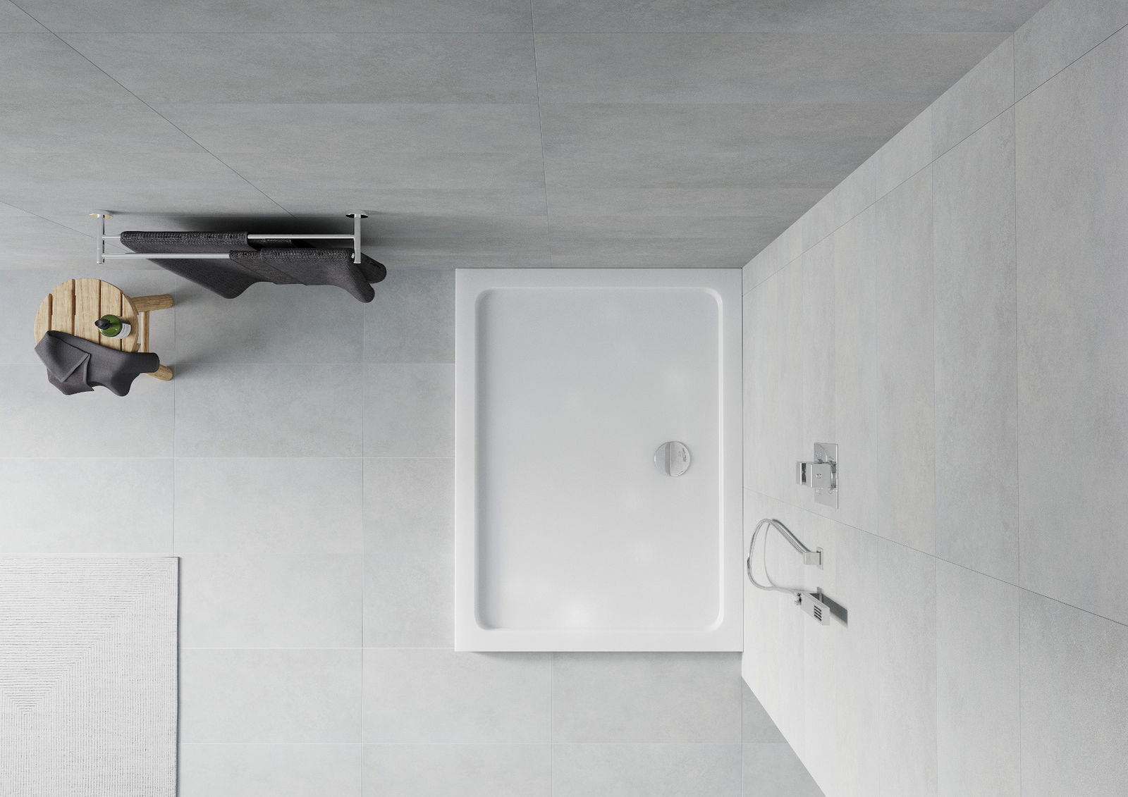 Tava de duș a fost proiectată astfel încât apa să poată curge liber spre scurgere. Oferă scurgerea rapidă și eficientă a apei de pe suprafața piscinei de căptușeală, împiedicând formarea de bălți și inundând baia.