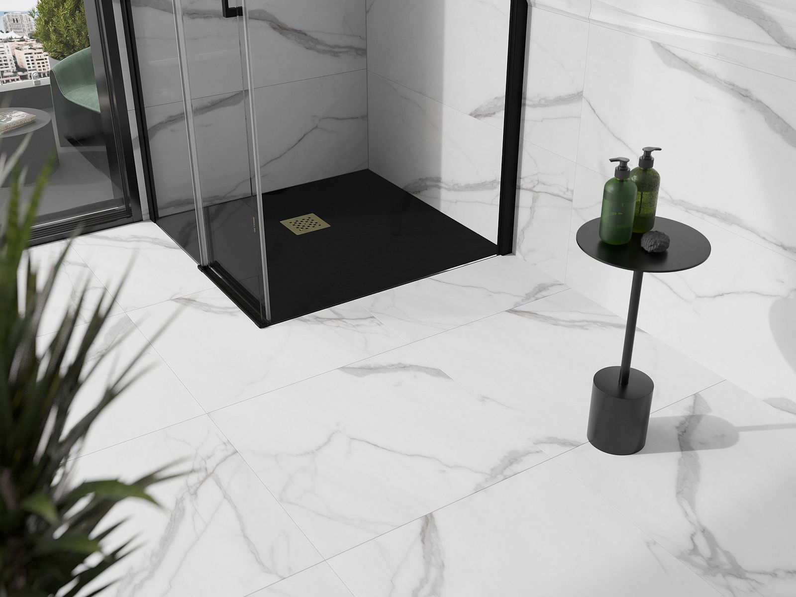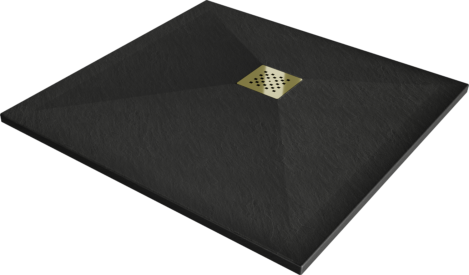 Mexen Stone+ cadă de duș pătrată din compozit 90 x 90 cm, neagră, mască aurie - 44709090-G