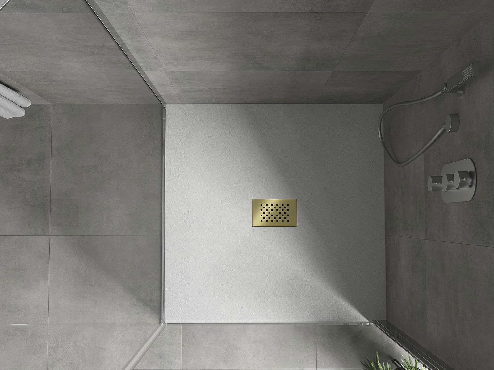 Mexen Hugo cadă de duș pătrată SMC 100 x 100 cm, albă, mască aurie - 42101010-G