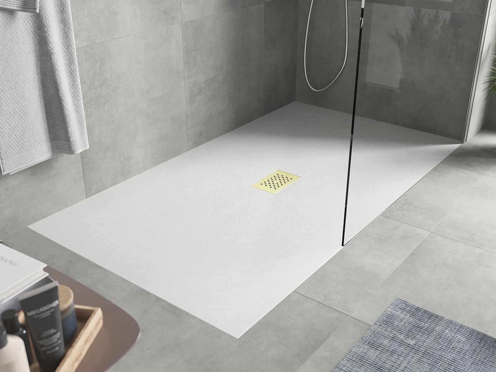 Suprafața tavii de duș seamănă cu o piatră cu structura sa. Este o combinație unică de aspect natural cu un aranjament interior modern. Adăugă caracter, subliniază estetica și eleganța decorului de baie și impresionează cu forma sa.
