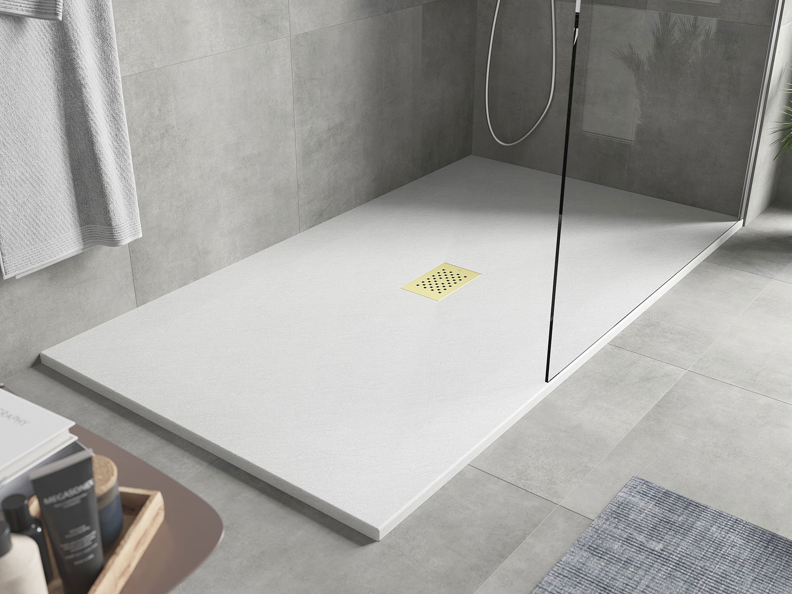 Suprafața tavii de duș seamănă cu o piatră cu structura sa. Este o combinație unică de aspect natural cu un aranjament interior modern. Adăugă caracter, subliniază estetica și eleganța decorului de baie și impresionează cu forma sa.
