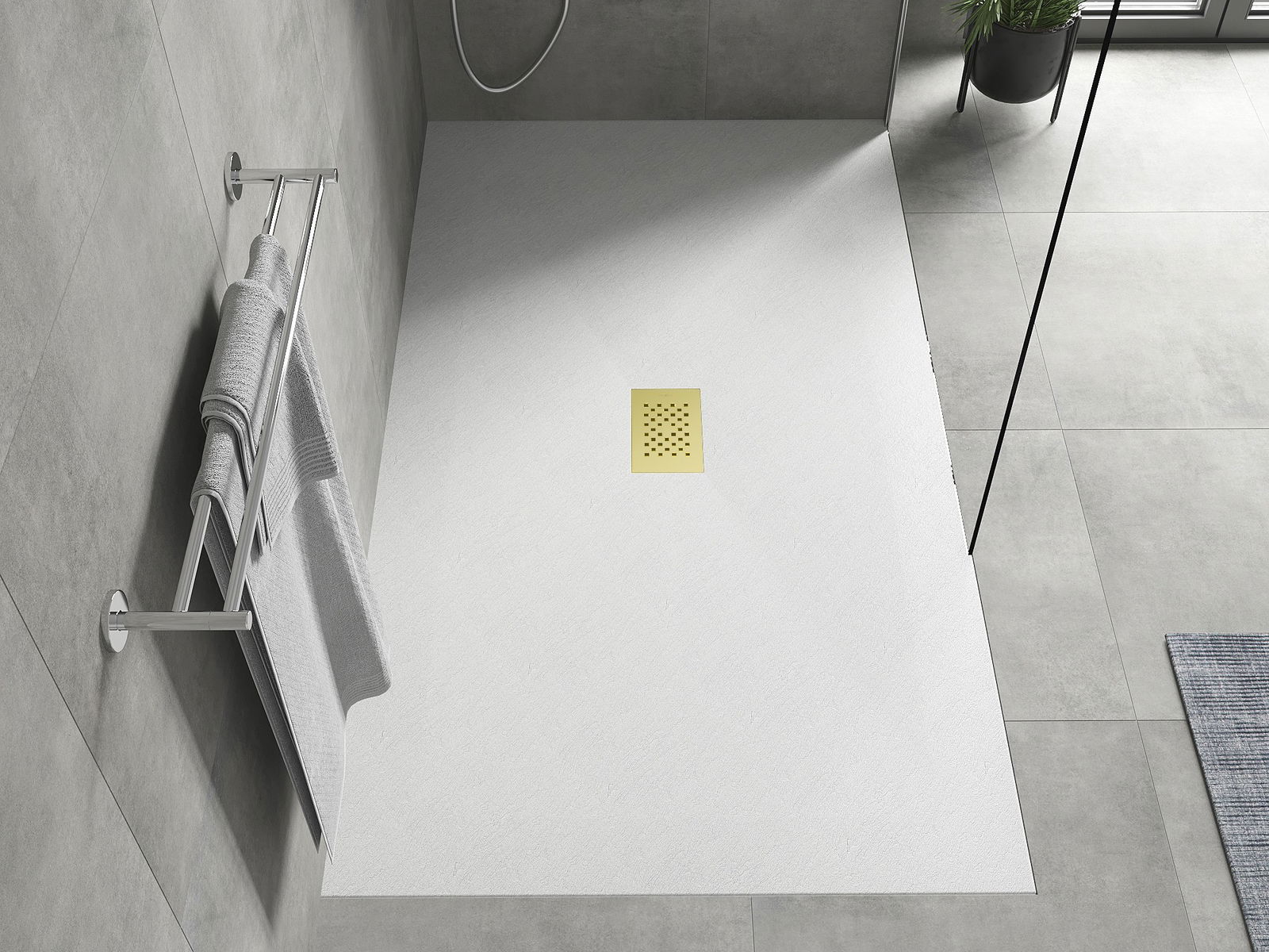 Suprafața tavii de duș seamănă cu o piatră cu structura sa. Este o combinație unică de aspect natural cu un aranjament interior modern. Adăugă caracter, subliniază estetica și eleganța decorului de baie și impresionează cu forma sa.