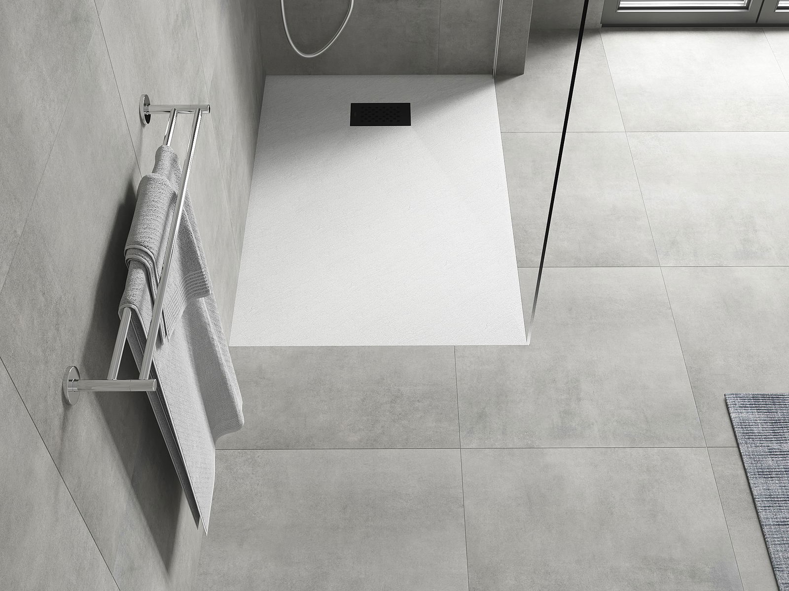 Suprafața tavii de duș seamănă cu o piatră cu structura sa. Este o combinație unică de aspect natural cu un aranjament interior modern. Adăugă caracter, subliniază estetica și eleganța decorului de baie și impresionează cu forma sa.