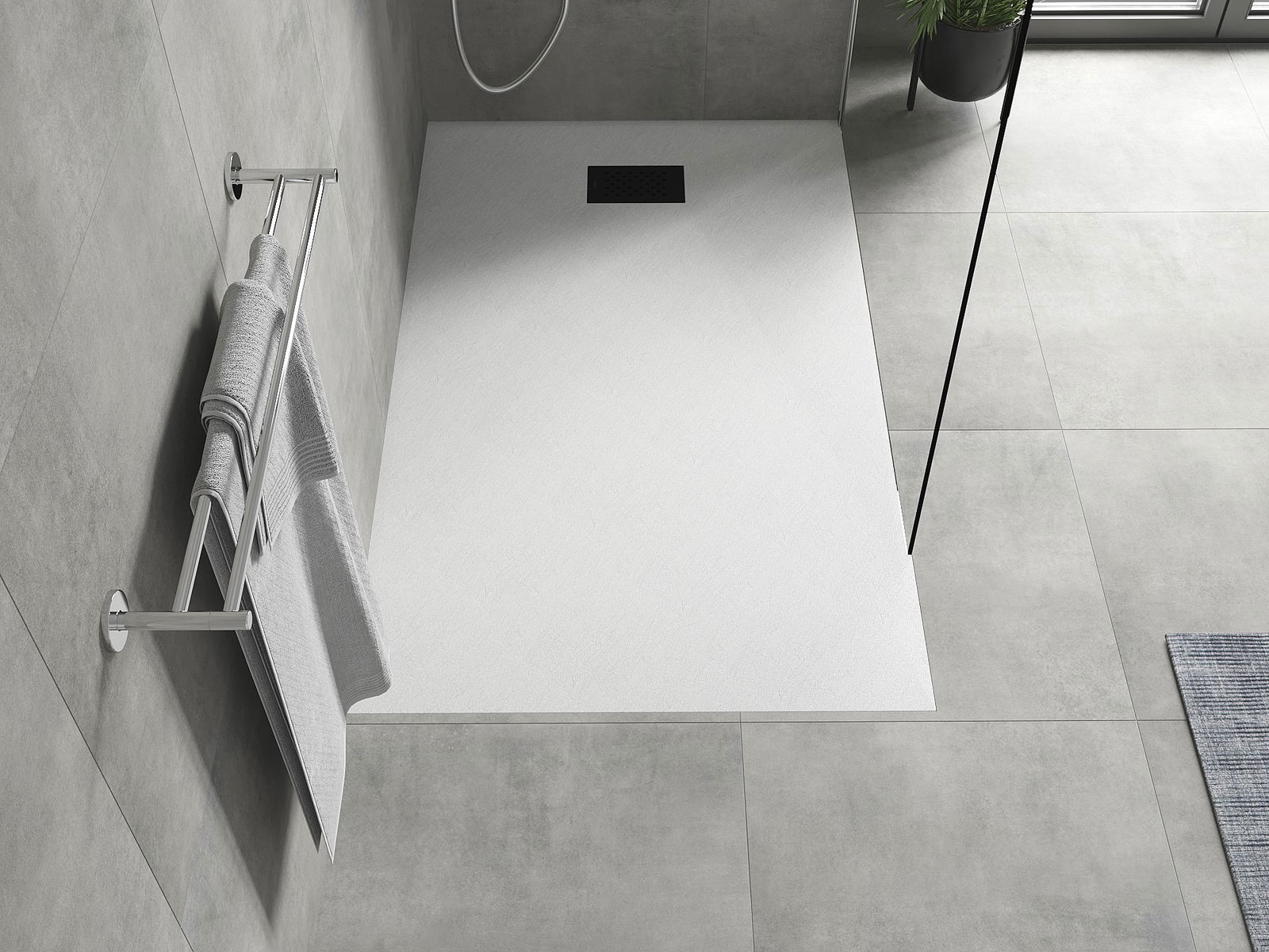 Suprafața tavii de duș seamănă cu o piatră cu structura sa. Este o combinație unică de aspect natural cu un aranjament interior modern. Adăugă caracter, subliniază estetica și eleganța decorului de baie și impresionează cu forma sa.