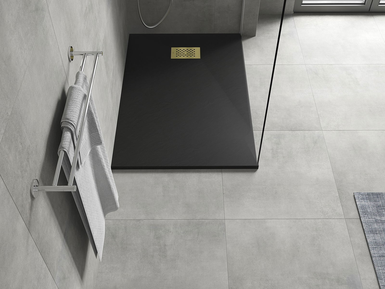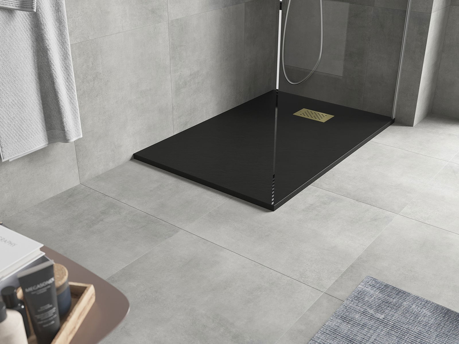 Mexen Hugo cadă dreptunghiulară SMC 110 x 80 cm, negru, mascare aurie - 42708011-G