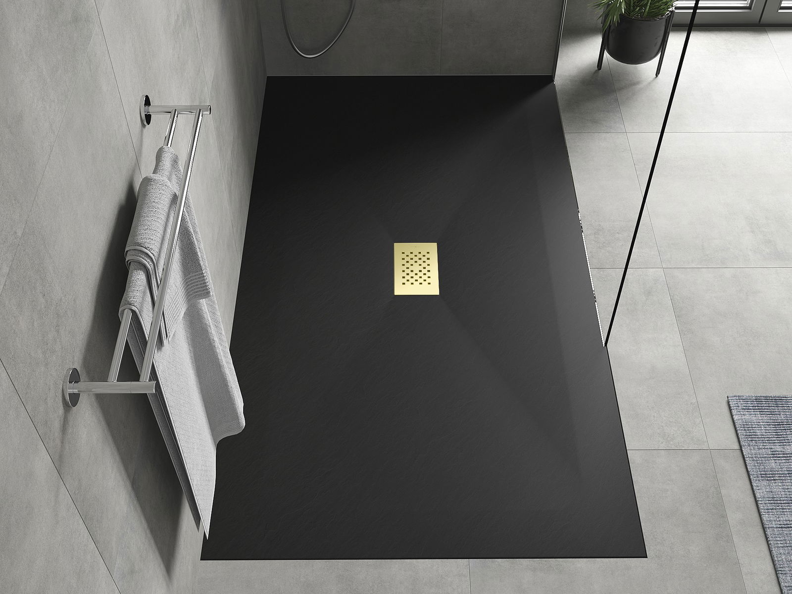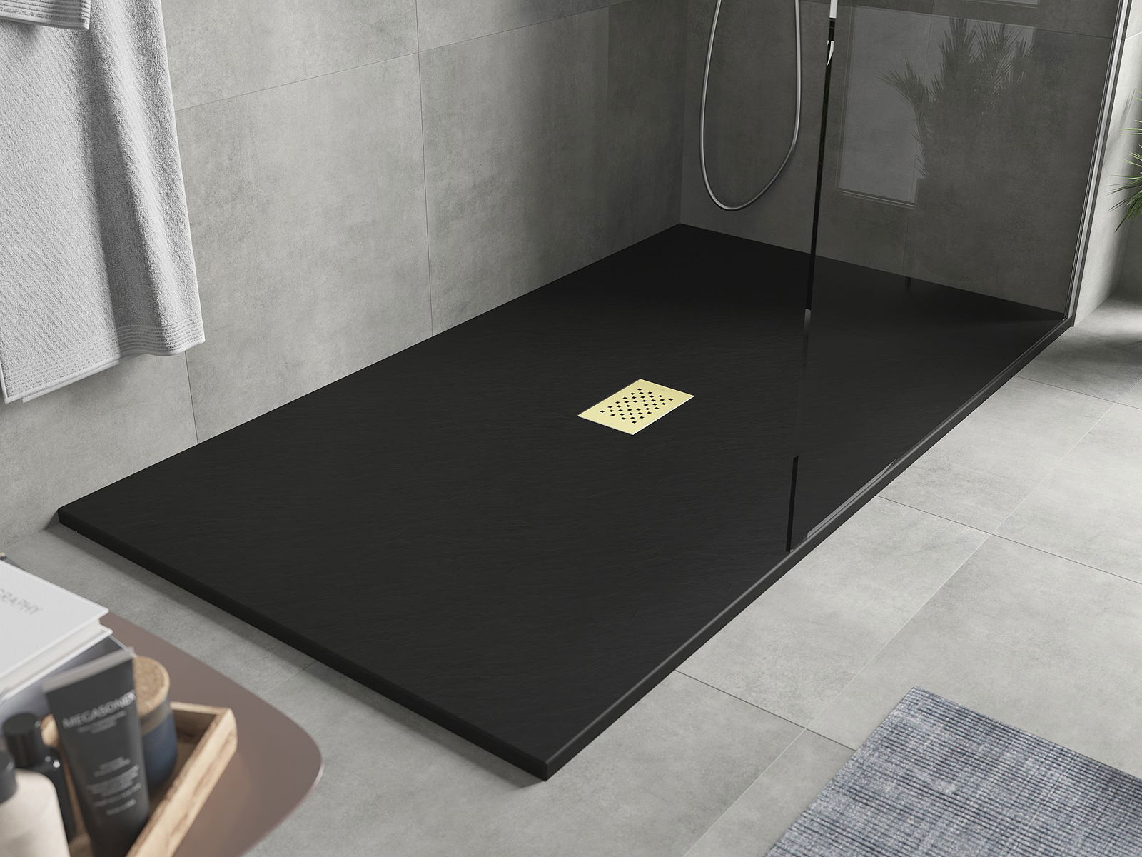 Mexen Hugo cadă de duș dreptunghiulară SMC 160 x 100 cm, negru, grilaj auriu - 42701016-G