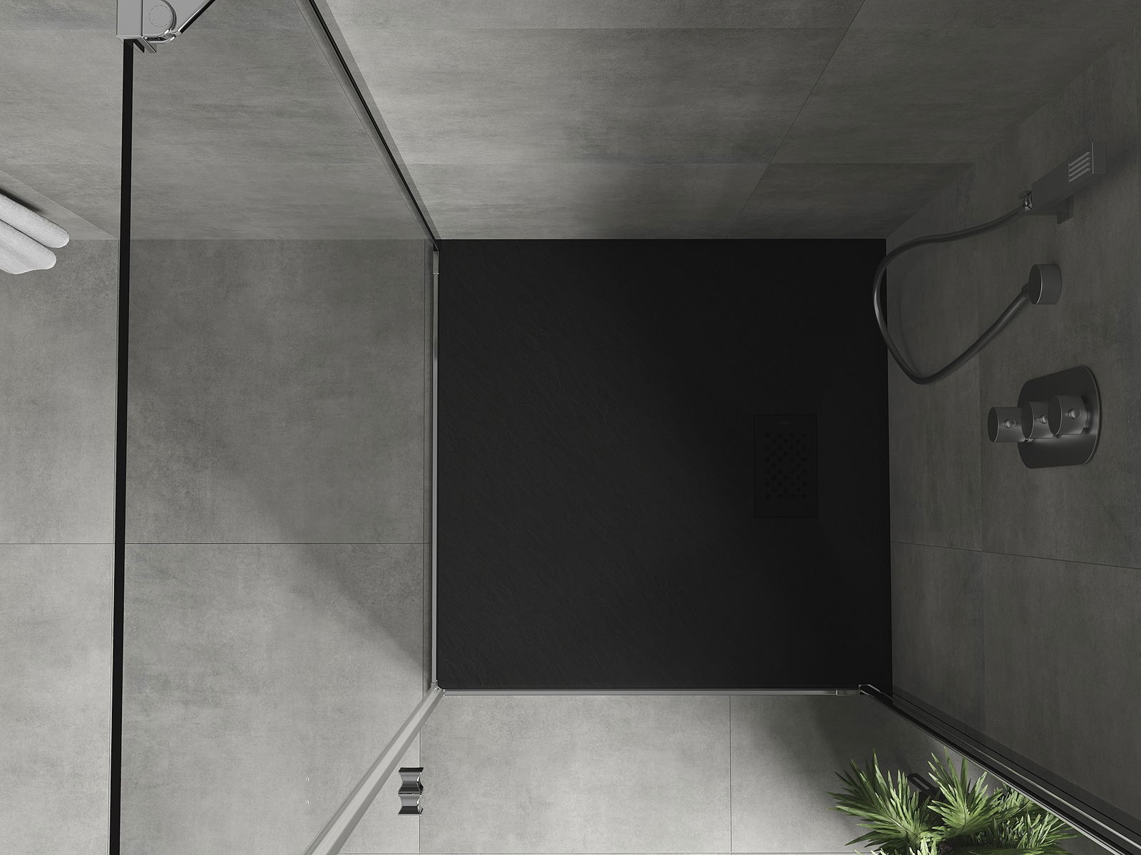 Mexen Hugo bază de duș pătrată SMC 70 x 70 cm, neagră, capac negru - 42707070-B