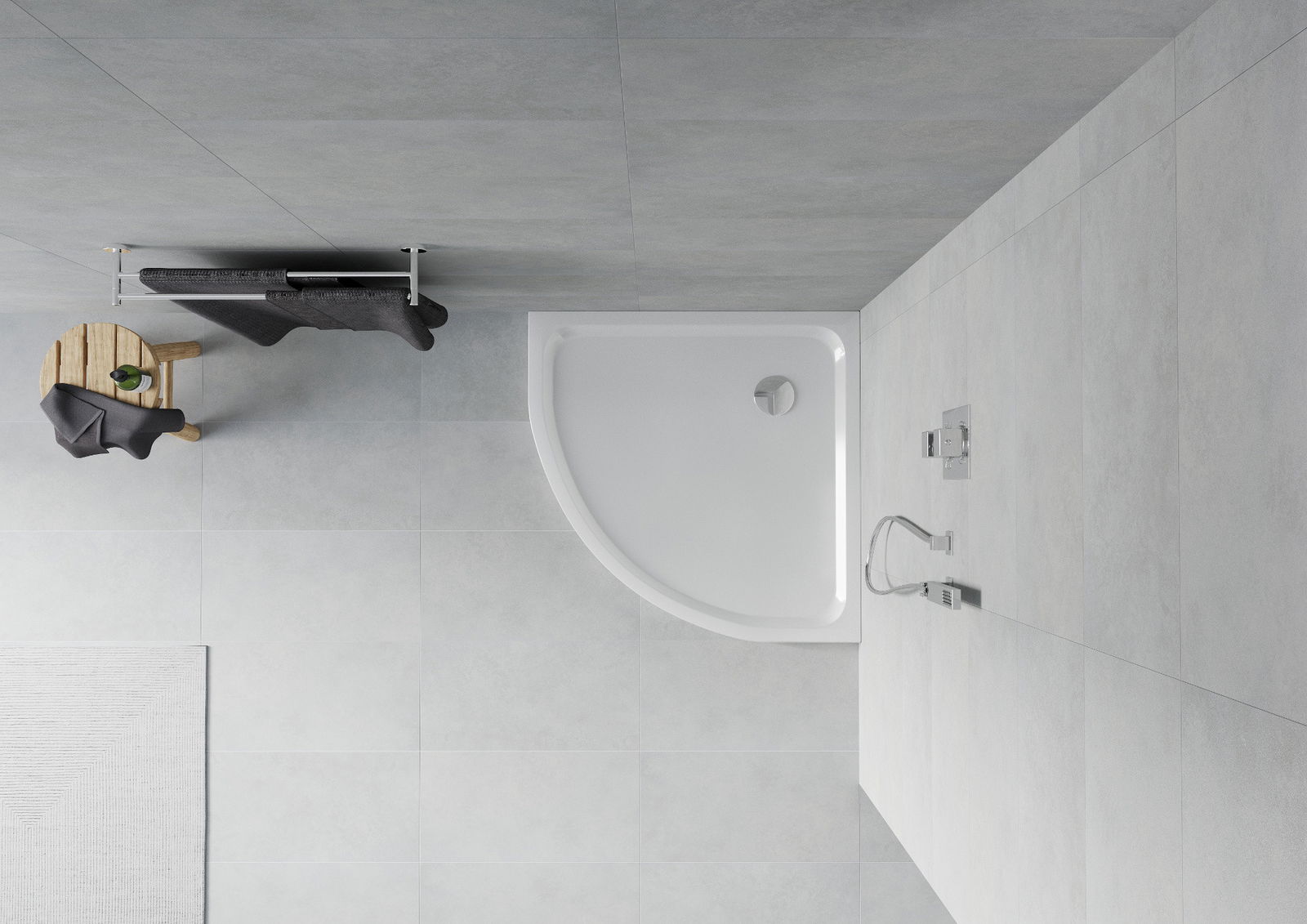 Tava de duș a fost proiectată astfel încât apa să poată curge liber spre scurgere. Oferă scurgerea rapidă și eficientă a apei de pe suprafața piscinei de căptușeală, împiedicând formarea de bălți și inundând baia.