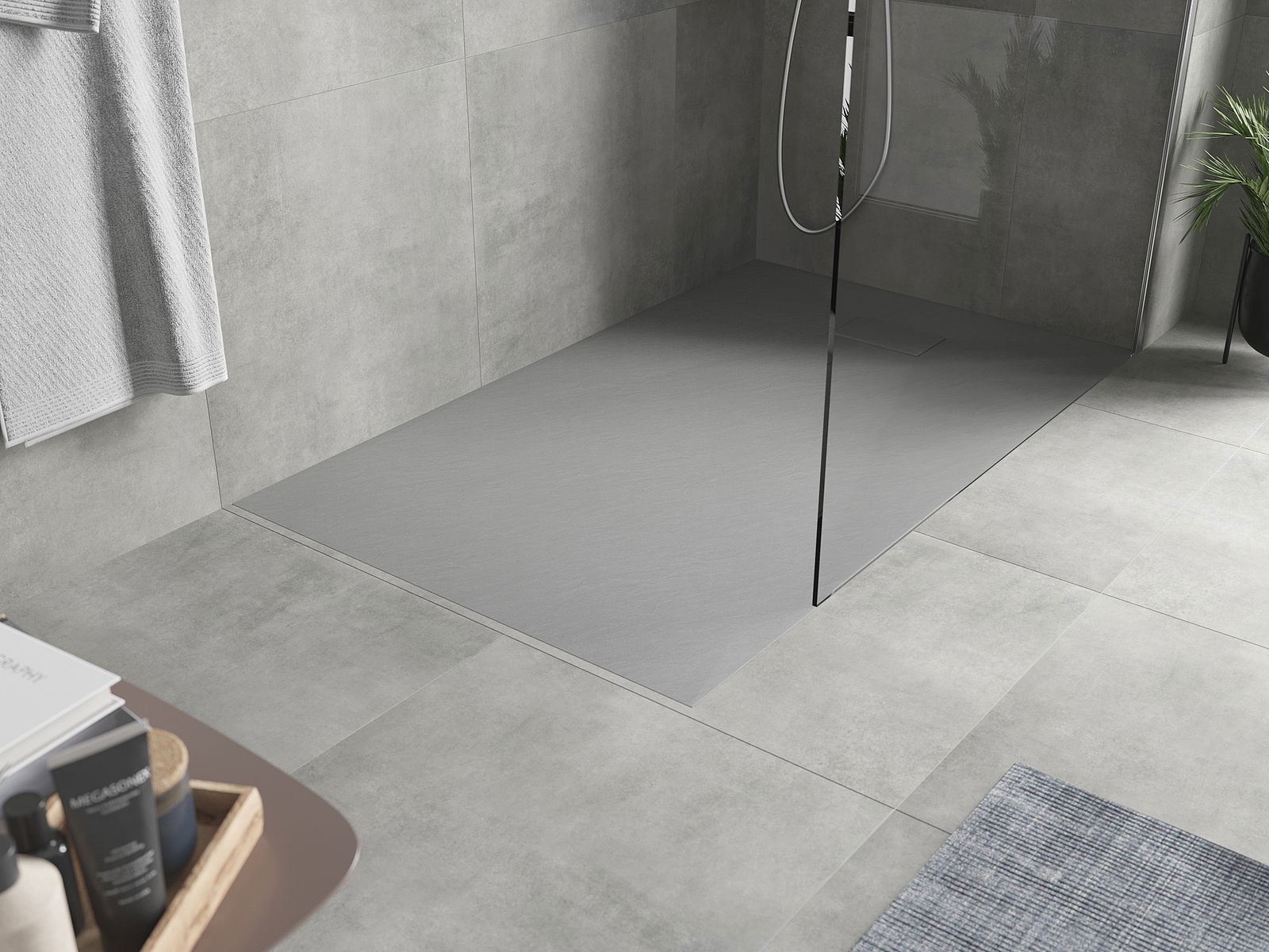 Suprafața tavii de duș seamănă cu o piatră cu structura sa. Este o combinație unică de aspect natural cu un aranjament interior modern. Adăugă caracter, subliniază estetica și eleganța decorului de baie și impresionează cu forma sa.