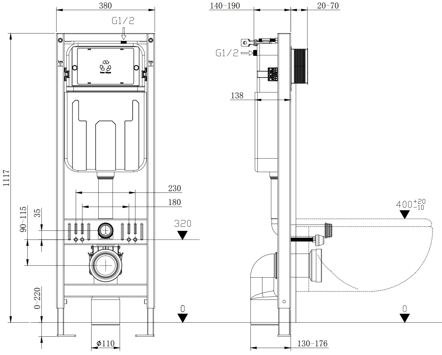 Posibilitatea de a regla înălțimea cadrului în intervalul 0-22 cm permite o potrivire mai bună la diverse condiții tehnice din baie. Gama de reglare flexibilă asigură comoditatea asamblării și obținerea înălțimii optime a cadrului.