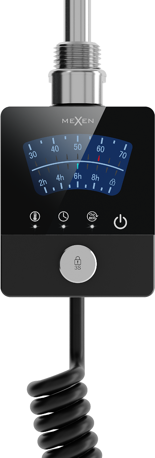 Mexen FA-BG8 rezistență electrică 300 W în culoare neagră este un dispozitiv avansat tehnologic care oferă încălzire eficientă. Cu o lungime totală de 409 mm și un element de încălzire de 310 mm, este ideal pentru diverse aplicații. Rezistența oferă funcții precum Sensitive (setarea temperaturii cu precizie de 5 grade), Comfort (opțiune de uscare), Smart (program săptămânal de lucru), ECO (economisire de energie), Anti-frost (protecție împotriva înghețului) și blocare parentală.