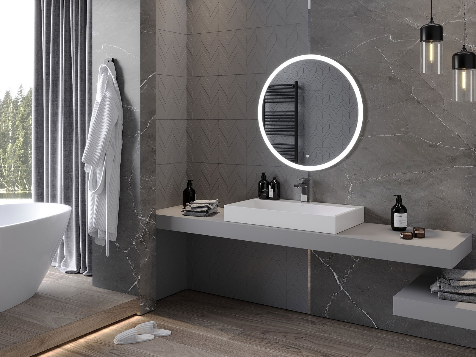 Lumina de fundal LED la oglindă este un element practic care facilitează îngrijirea zilnică, datorită posibilității unei iluminări faciale ideale. Lumina de fundal oferă băii un finisaj modern, subliniind decorul său elegant.